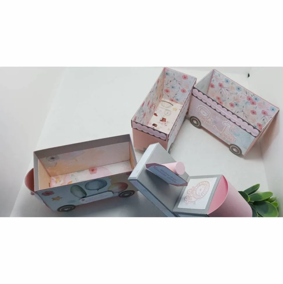 In Diesem Zug haben viele Kleine Dinge Platz, die man zur Geburt verschenken kann. Auch Windeln passen in die offenen Wagons. Die Lok des Zuges hat einen Deckel, der abgenommen werden kann, die anderen 2 Wagons sind offen.