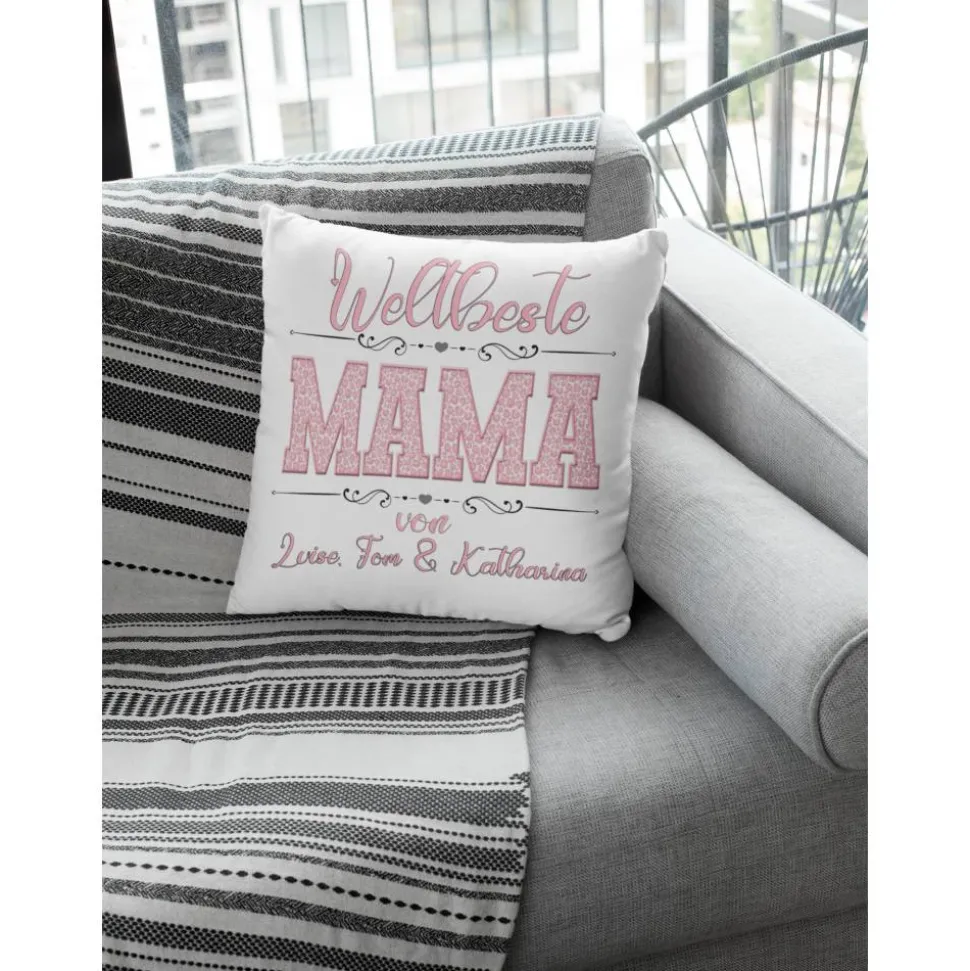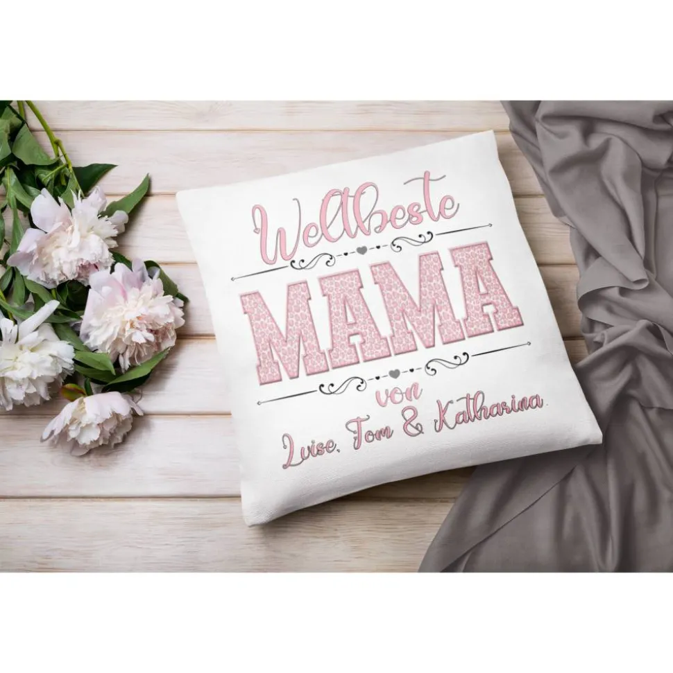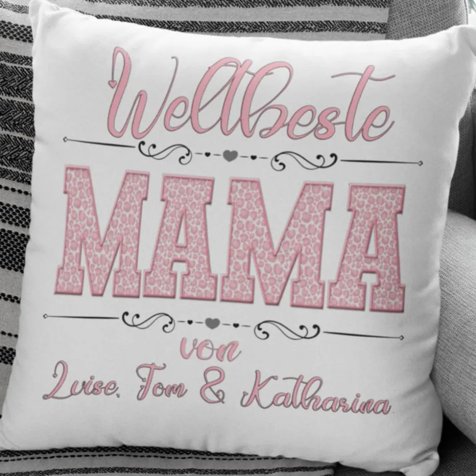 Ihr Mama Kissen mit Hübschen muttertags Motiv . Personalisieren Sie ihr eigenes Kissen mit Wunschnamen und erhalten somit ein Unikat an einem Namenskissen.