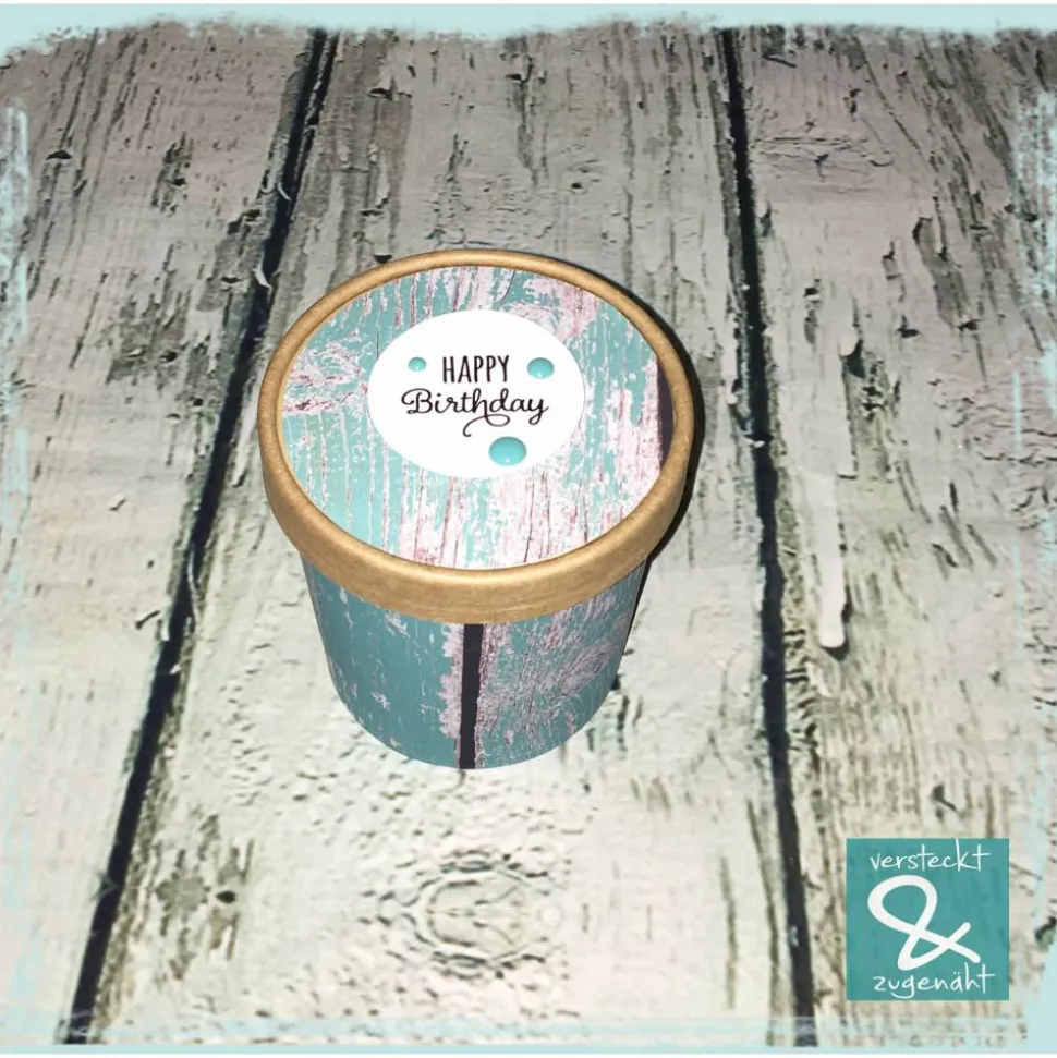 Ursprünglich waren das Suppenbecher to go, Eine Banderole um den Becher und der Kreis auf den Deckel wurden von mir gedruckt, geschnitten und aufgeklebt. Das Design ist von Kleine Göhre (