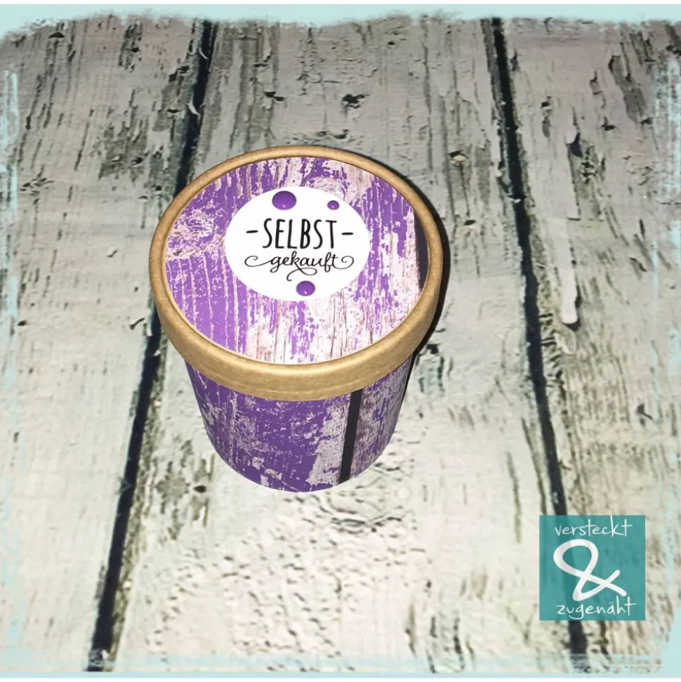 Ursprünglich waren das Suppenbecher to go, Eine Banderole um den Becher und der Kreis auf den Deckel wurden von mir gedruckt, geschnitten und aufgeklebt. Das Design ist von Kleine Göhre (