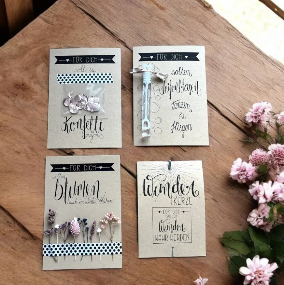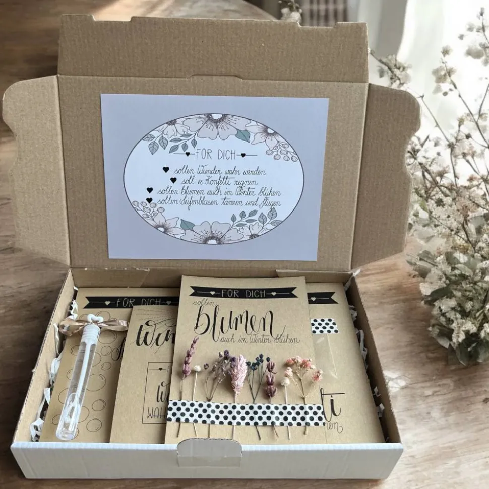 – Karte mit Trockenblumen „Für dich sollen Blumen auch im Winter blühen“
