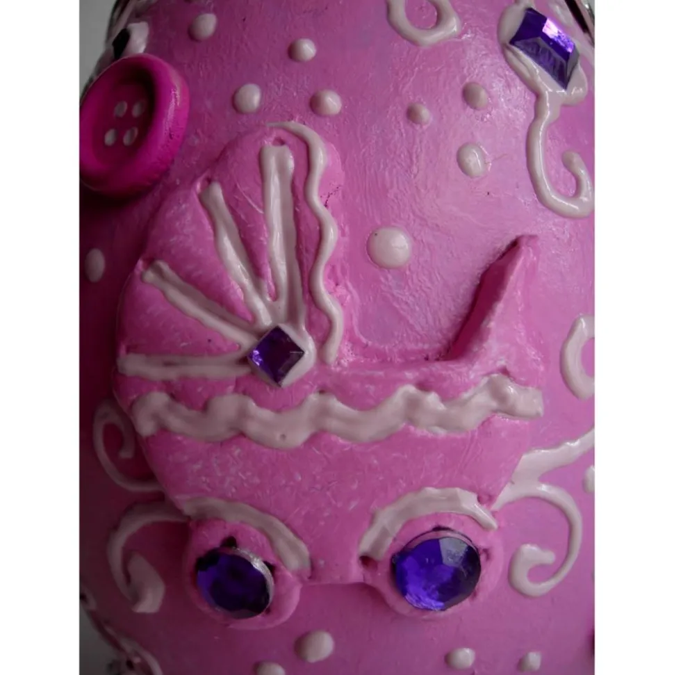 Keramik-Ei, mit Acrylfarben und Dekoelementen gestaltet, witziges Künstler-Ei der etwas anderen Art!