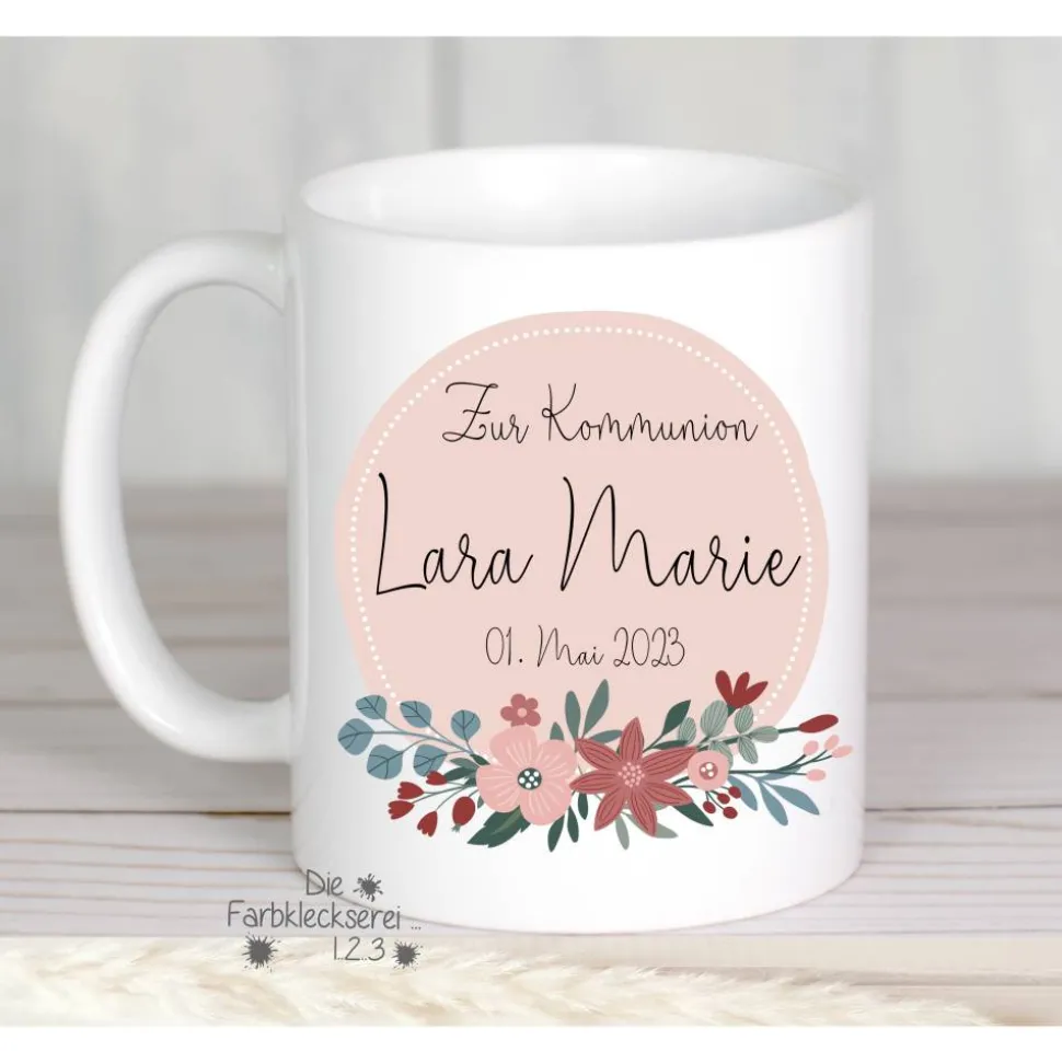 Wunderschöne, verspielte und edle Tasse aus Keramik als Geschenk zur Kommunion oder der Konfirmation.