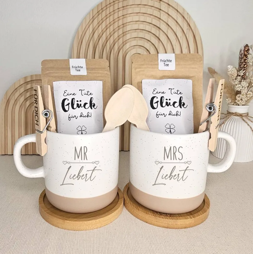 Unser exklusives Geschenkset, bestehend aus zwei personalisierten Kaffeetassen, ist die ideale Wahl für jedes Brautpaar!