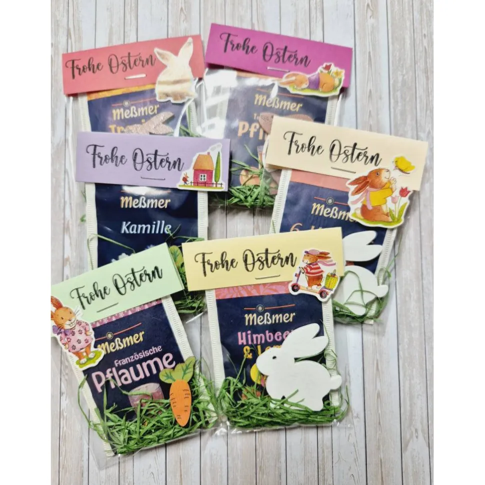 Jede liebevoll gestaltete Geschenktüte ist bereits gefüllt mit einem Teebeutel sowie einem dekorativen Holzteilchen/Styroporei/Filzteil. Die Tütchen sind von Hand gefertigt und bestechen durch ihre individuelle Optik.
