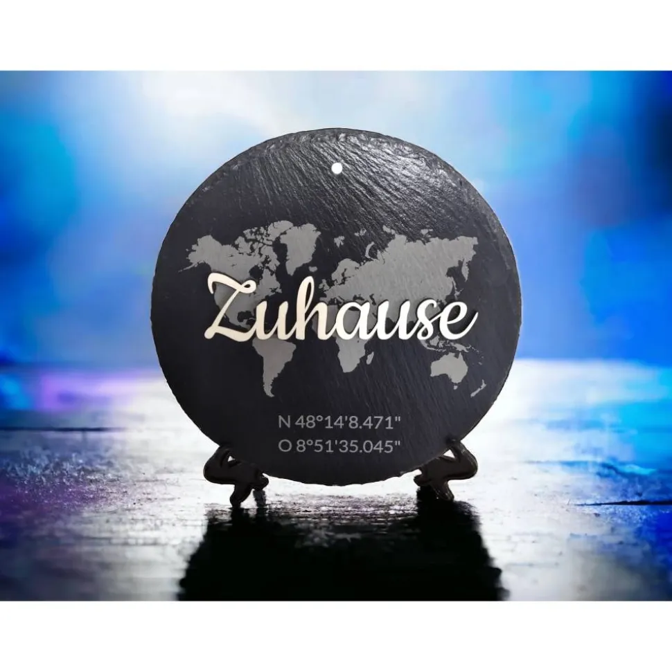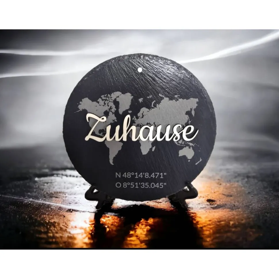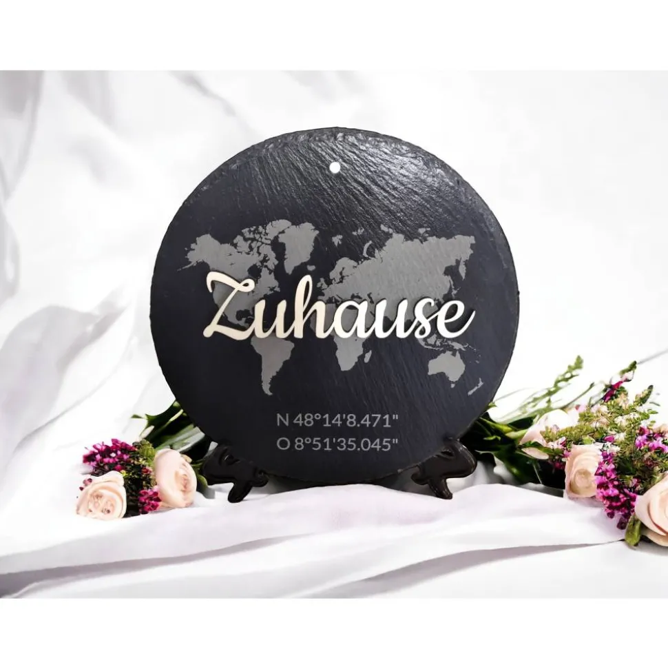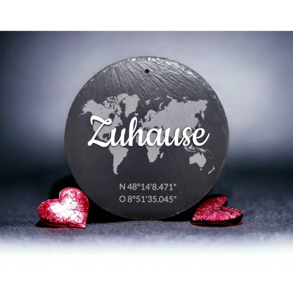 Optional können sie die Schieferplatte mit ihren Wunschkoordinaten verzieren.