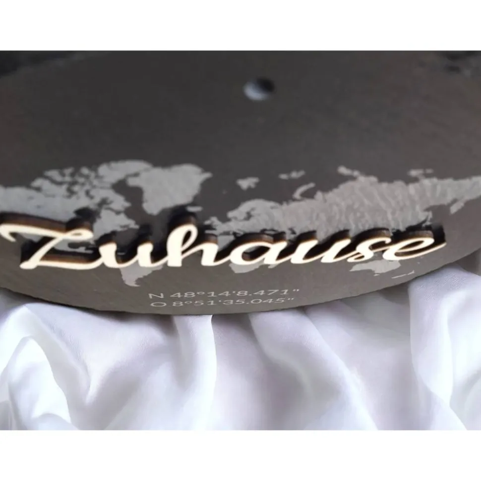 Diese einzigartige Kombination aus 3D-Holzstruktur und der gelaserten Schieferplatte macht sie zu einem besonderen Geschenk, insbesondere für Verliebte und als einzigartiges personalisiertes Geschenk, eignet sie sich besonders gut für den Einzug, um ein außergewöhnliches Erinnerungsstück zu schenken.