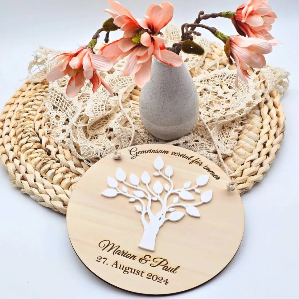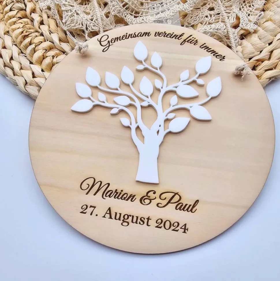 Mach diesen besonderen Tag unvergesslich mit unserem personalisierten Holzschild zur Hochzeit. Dieses individuelle Geschenk ist perfekt, um Braut und Bräutigam auf stilvolle Weise zu gratulieren. Unser hochwertiges Holzschild wird nach deinen Wünschen gestaltet und ist ein wunderschönes Andenken an die Hochzeit. Ideal auch als kreative Idee für ein Geldgeschenk verpackt in einem dekorativen Element. Dieses Schild ist nicht nur eine hübsche Dekoration, sondern ein liebevolles Zeichen deiner Glückwünsche.