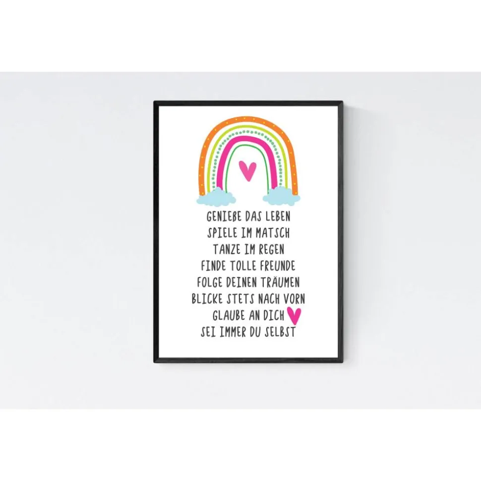 Ein toller Mutmacher für den neuen Lebensabschnitt in einem originellen Design mit einem schönen, leuchtenden Regenbogen für Babyzimmer oder Kinderzimmer.