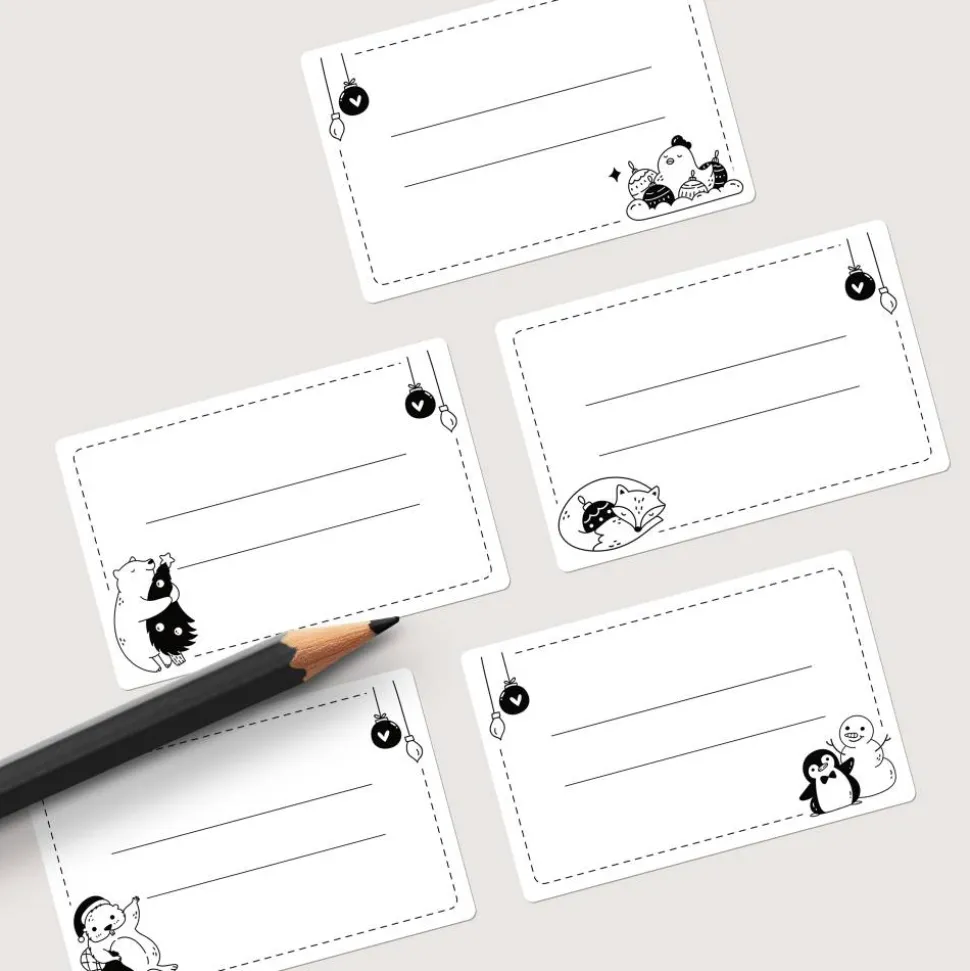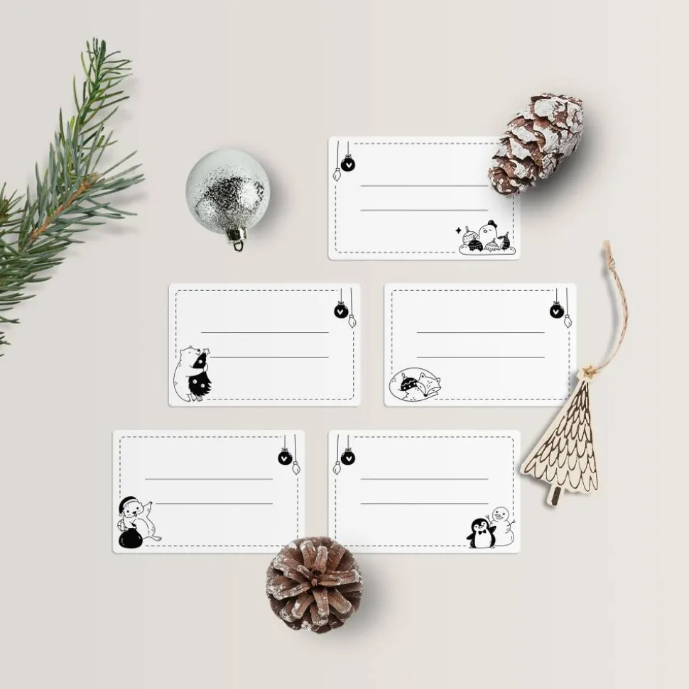 Mit diesen süßen Geschenketiketten können Sie nicht nur Ihre Weihnachtsgeschenke hübsch verzieren, sondern zum Beispiel auch die Geschenktüten des DIY Adventskalenders sicher verschließen und beschriften. Die weihnachtlichen Motive mit süßen Tieren (Huhn, Bär, Fuchs, Biber und Pinguin) sind schlicht und doch verspielt, weshalb sie sich besonders gut für Kinder, aber auch für Erwachsene eignen.