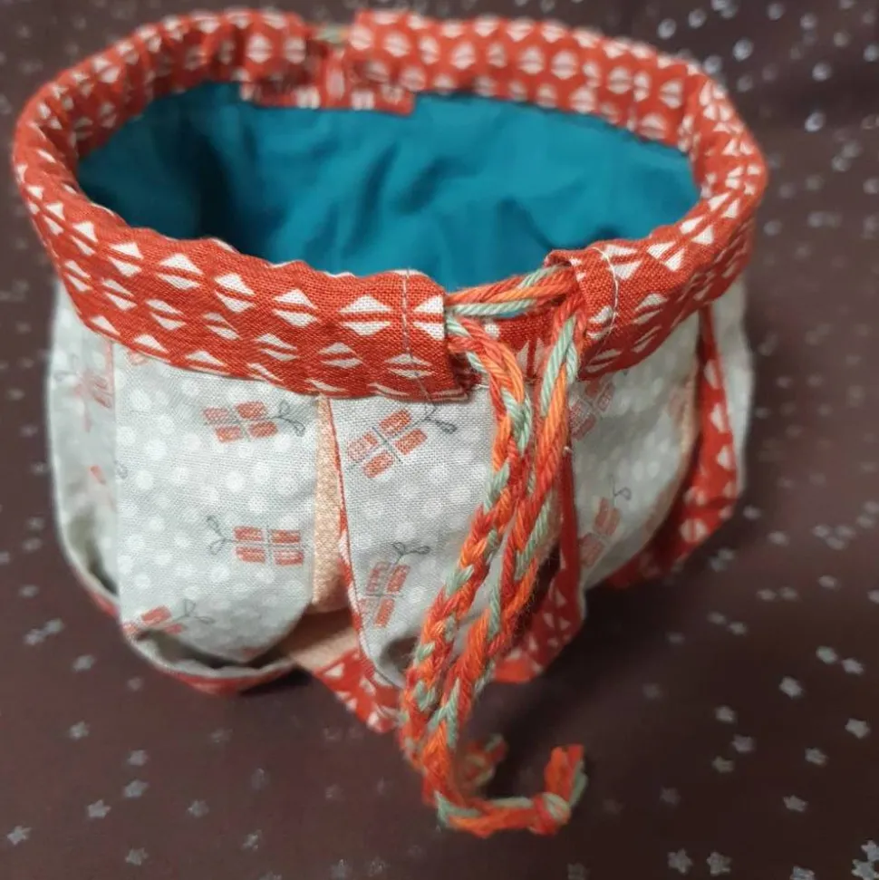Bei diesem Beutel mit doppeltem Kordelzug wurden vorgewaschene Designerstoffe (100% Baumwolle) verwendet.