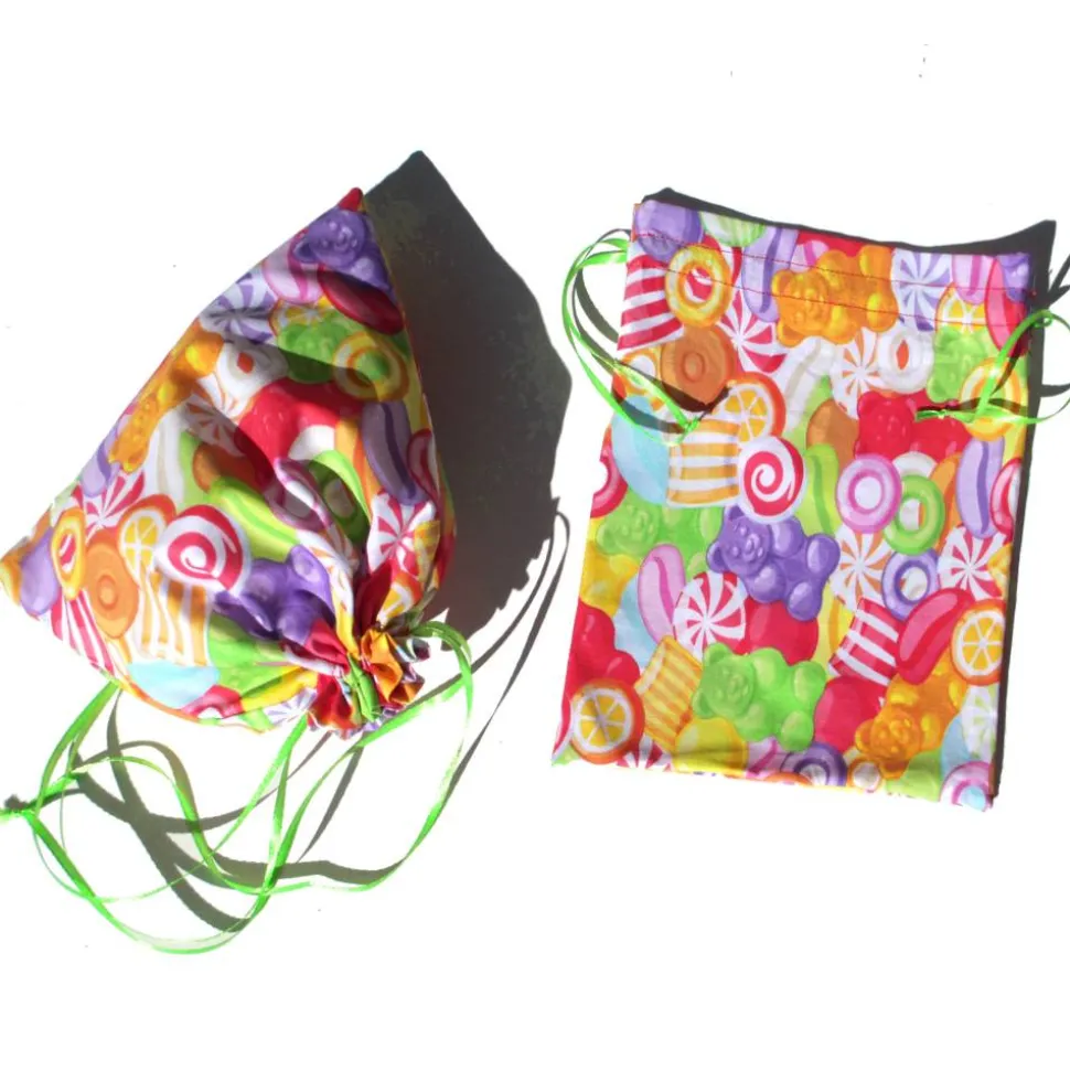 Geschenkbeutel “Bonbons” aus 100% Baumwolle! Dieser liebevoll genähte Geschenkbeutel ist die perfekte Alternative zu herkömmlicher Geschenkverpackung aus Folie oder Papier. Das bunte Bonbonmuster macht ihn zum echten Hingucker – besonders zu Halloween oder als süße Verpackung für Geschenke und Süßigkeiten.