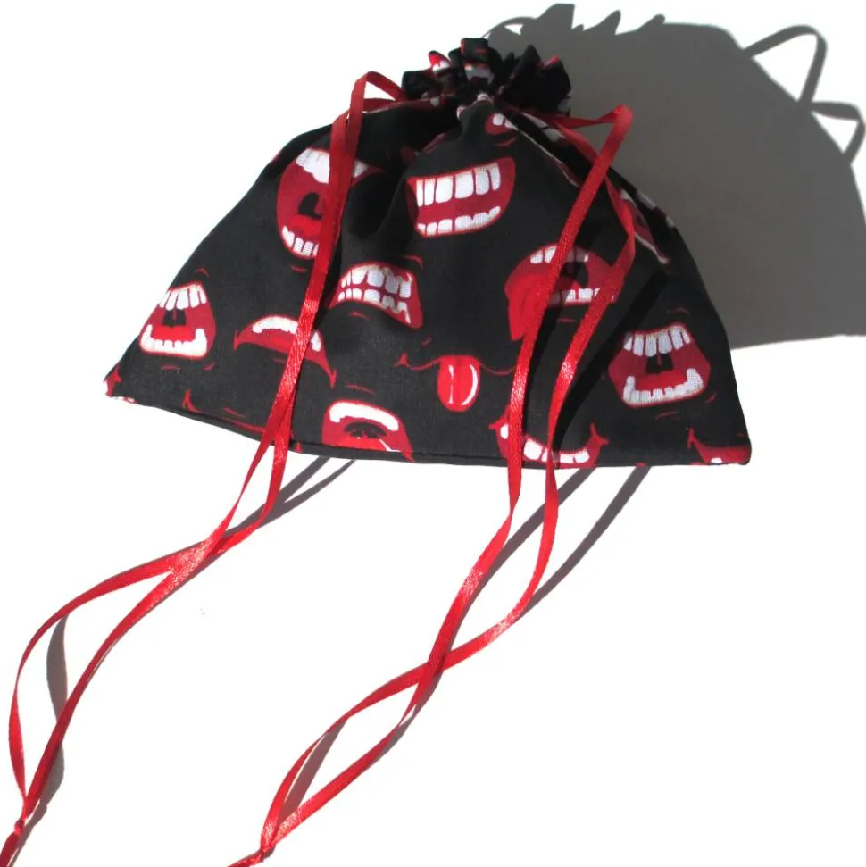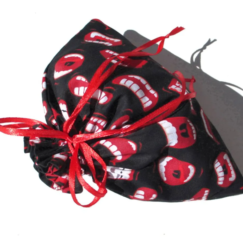 Der Beutel misst 17 cm in der Breite und 15 cm in der Höhe und ist damit ideal geeignet, um Süßigkeiten zu sammeln oder kleine Geschenke stilvoll zu verpacken. Mit den roten Satinbändern im Tunnelzug können Sie den Beutel sicher öffnen und verschließen.