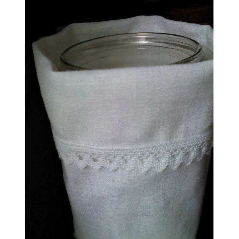 Maße: Höhe 24cm nicht umgeschlagen, Umfang 38cm. Der Lichtbeutel lässt sich bis 30° waschen und auf Baumwolle-Leinen gebügelt werden.