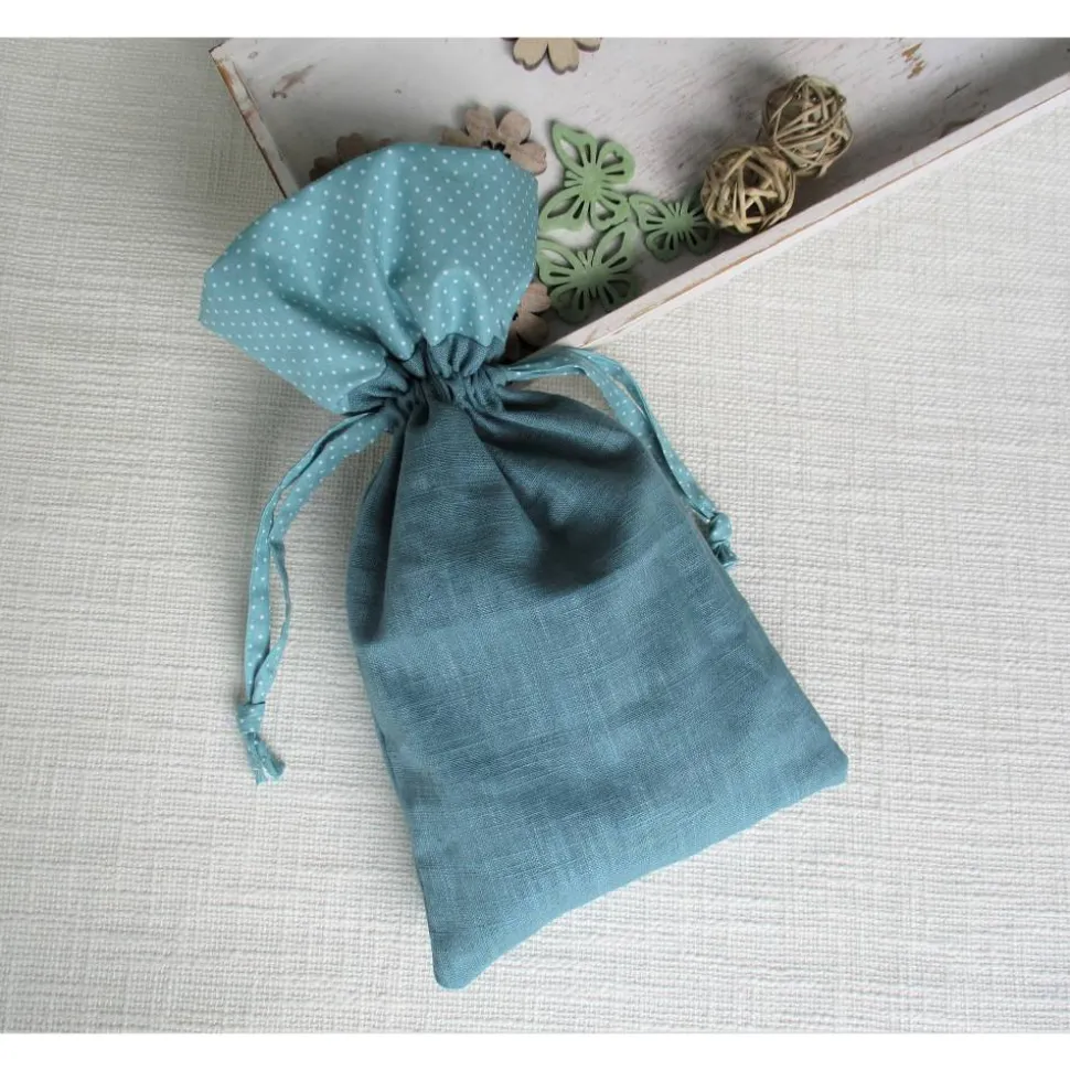 Die Beutel haben einen praktischen Verschluß, sie werden mit dem genähten Band in Kontrastfarbe einfach zugezogen.