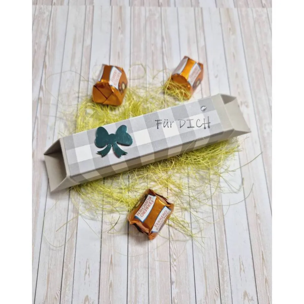 Diese liebevoll handgemachte Geschenkschachtel aus hochwertigem, grauen Tonkarton ist die perfekte Verpackung für Geldgeschenke oder kleine schokoladige Küsschen. Rolle einfach die Geldscheine und stecke sie in das im Angebot enthaltene Reagenzglas. Anschließend verpackst du das Ganze in die dekorative Schachtel und verschließt sie stilvoll mit der verzierten Banderole.