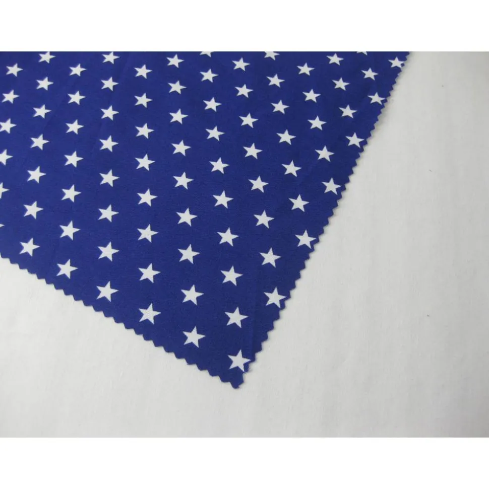 Dieses Tuch hat das Maß: B 43 cm x L 43 cm. Die Kanten sind gezackt. Der Stoff ist blau-weiß.