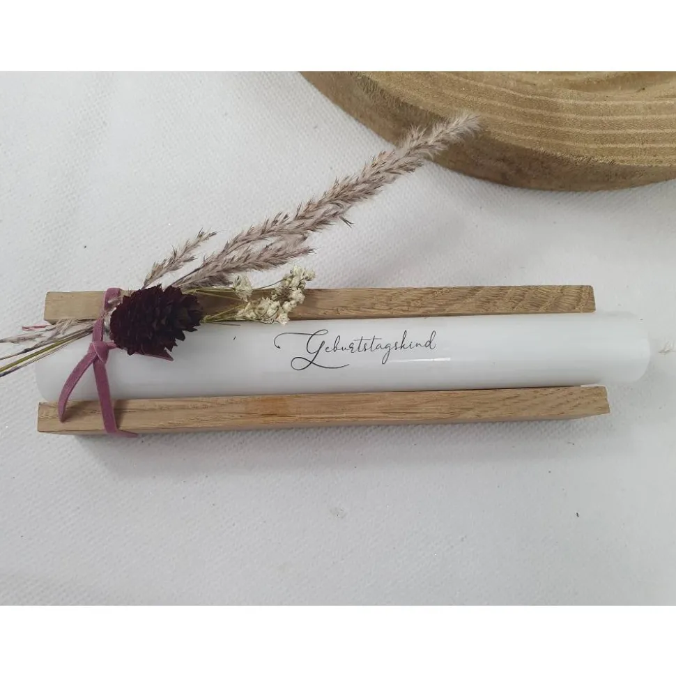 Wahlweise gibt es einen Kerzenhalter in silber oder schwarz dazu – dieser passt exakt in die Holzverpackung.