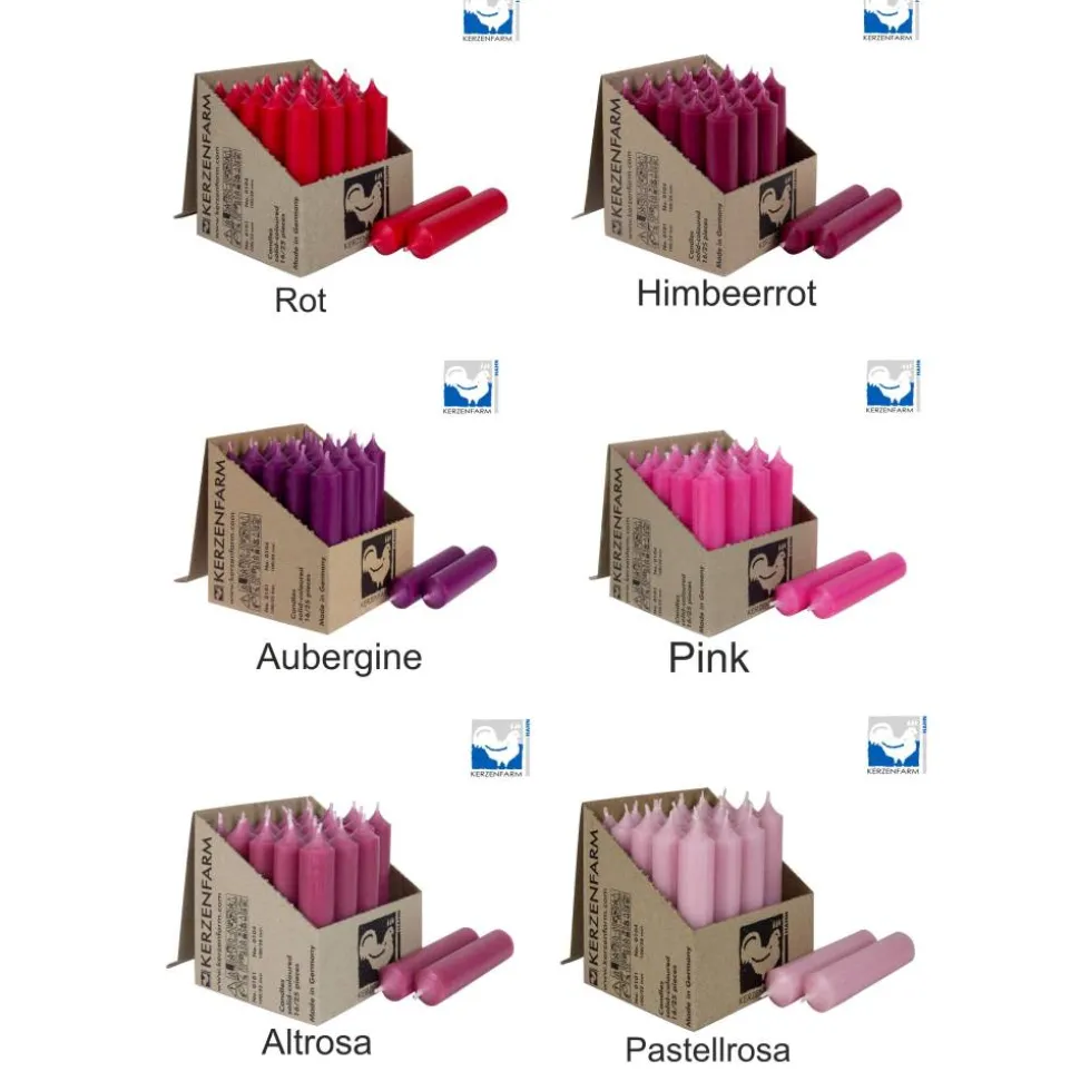 Die Kerzen bestehen aus hochgereinigten Paraffinwachsen sind RAL-zertifiziert und unterliegen einer regelmäßigen Qualitätskontrolle. Sie verbrennen rückstandsfrei und entsprechen den Reinheitskriterien im Lebensmittelbereich. Die Baumwolldochte sowie die verwendeten Farben sind ebenso RAL-zertifiziert. Brenndauer ca. 4 Std.