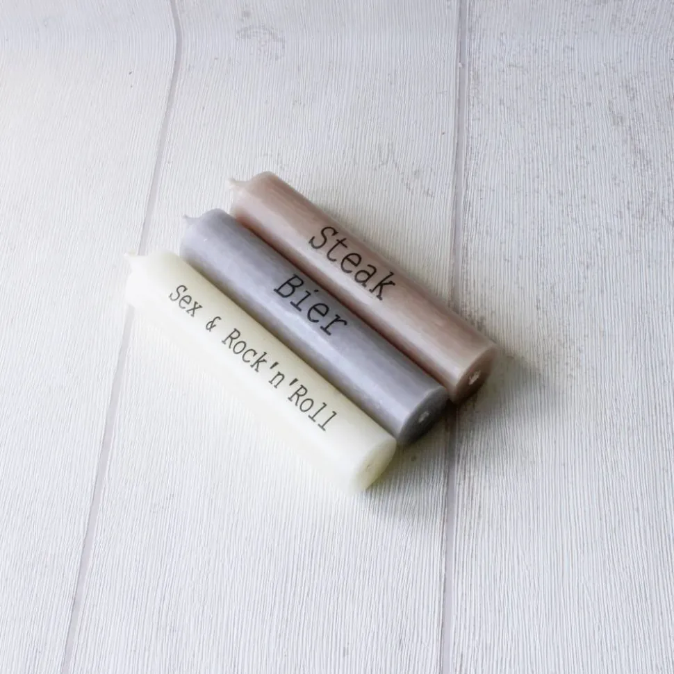 - Drei Stabkerzen (ca. 10 x 2,2 cm, Stearin)