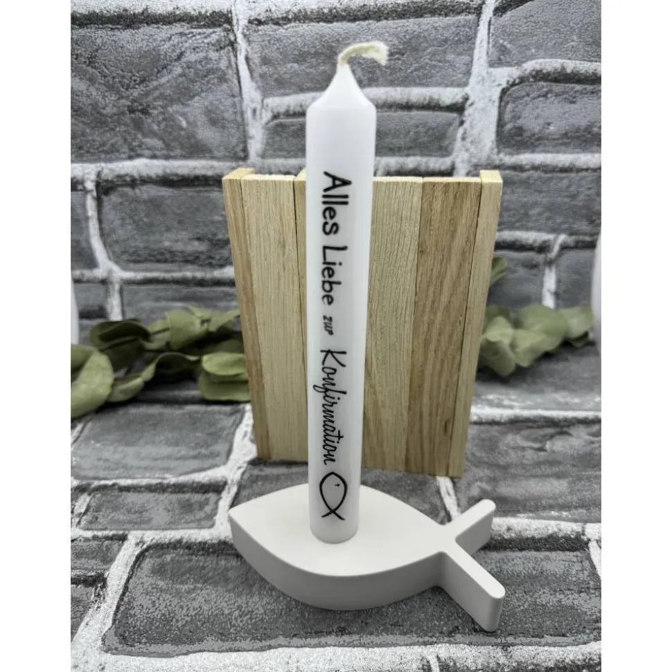 Dieses schöne Set besteht aus einer Kerze und einem Fisch-Kerzenhalter.
