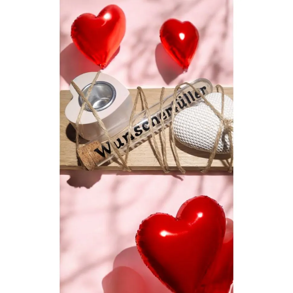 Überrasche deine Liebsten mit dem einzigartigen Geschenkset Wunscherfüller! Dieses handgefertigte Set besteht aus einer edlen Holzunterlage, einem liebevoll gegossenen Herzteelicht und einem dekorativen Herz – beide aus hochwertigem Keraflott gefertigt. Ein stilvolles Reagenzglas mit der Aufschrift Wunscherfüller rundet das Set ab und bietet Platz für einen Gutschein oder Geldschein – perfekt für Geburtstage, Hochzeiten oder besondere Anlässe.
