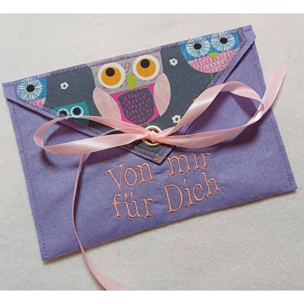 Geschenkumschlag mit Stickerei „Von mir für Dich“