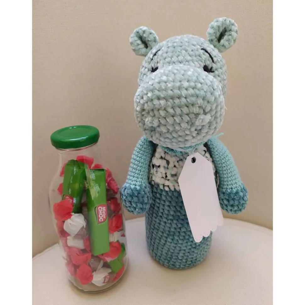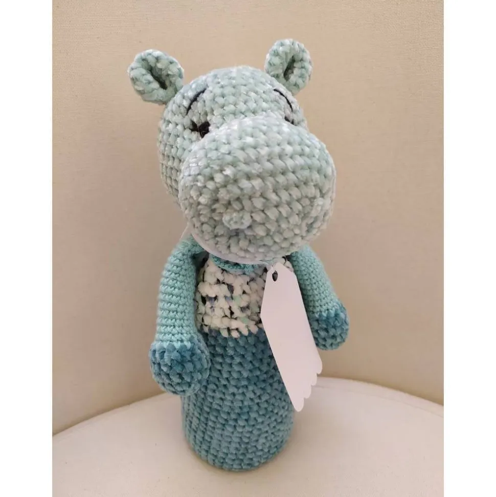 ** das Nilpferd hat aufgestickte Augen