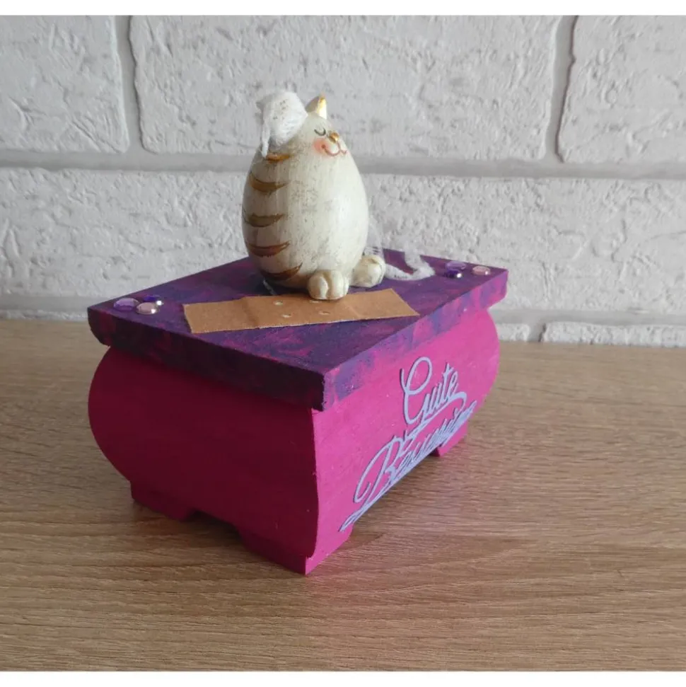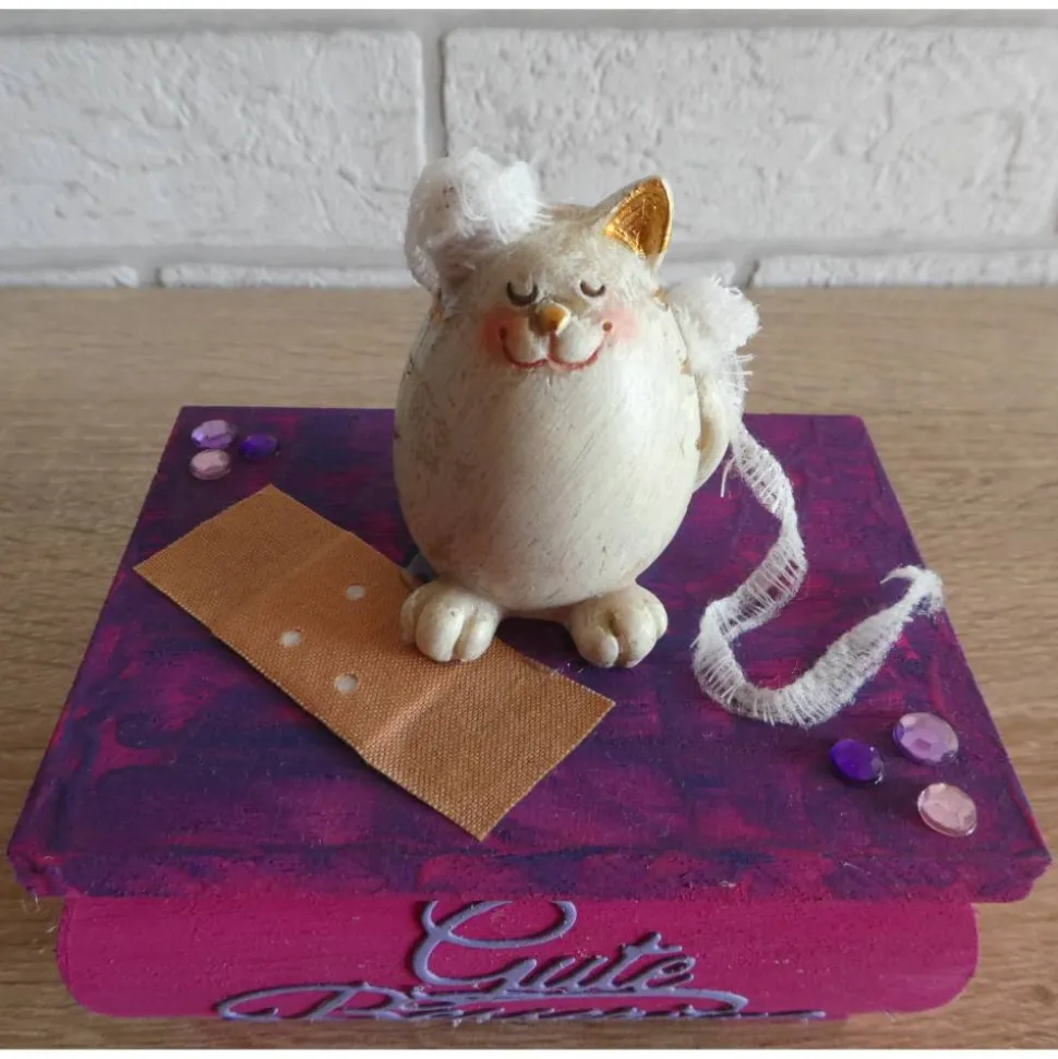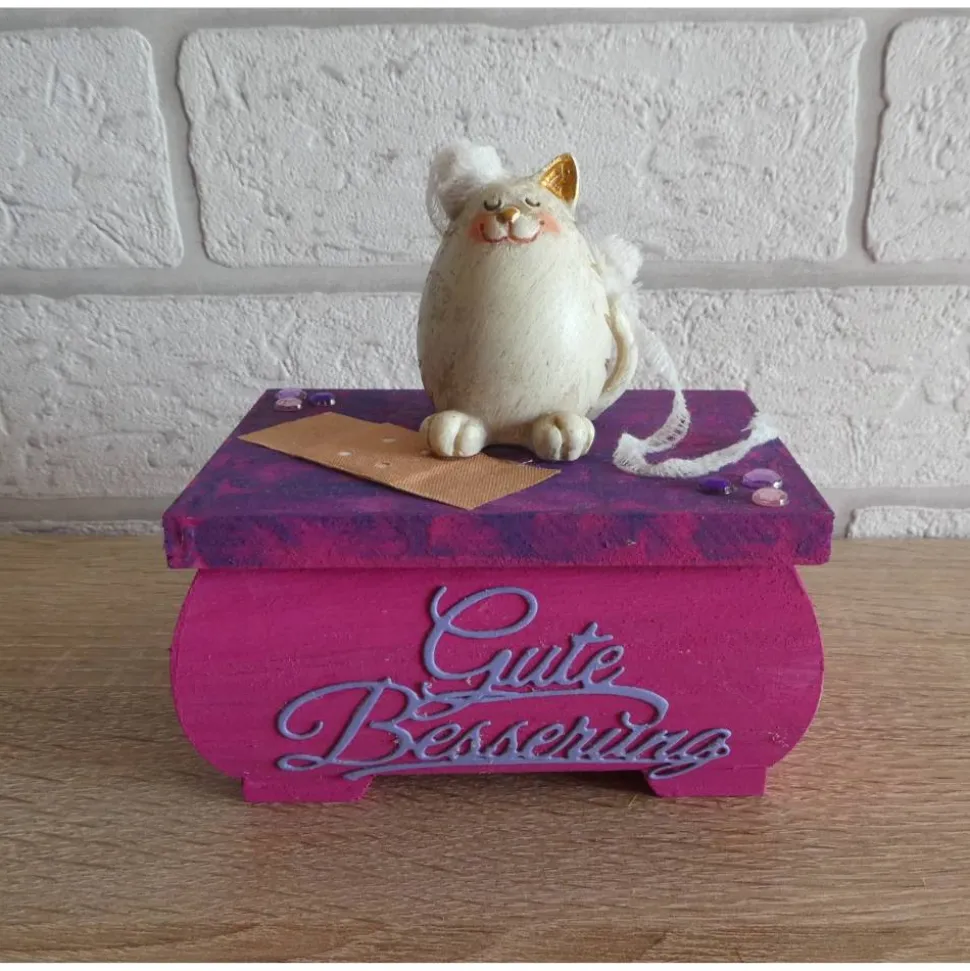 Dekoriert wurde die Truhe mit einer Katze, Verbandszeug und Pflaster