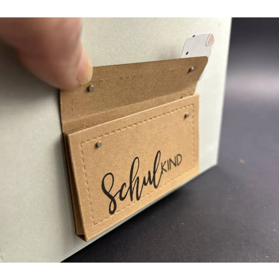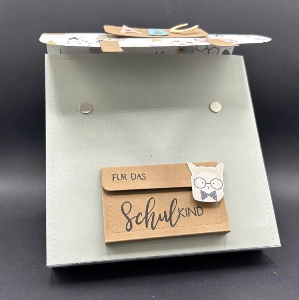 Gerne entwerfe ich auch dazu passend eine Karte zur Einschulung, eine Gutscheinverpackung oder Gastgeschenke für die Feier.