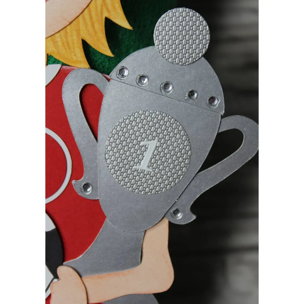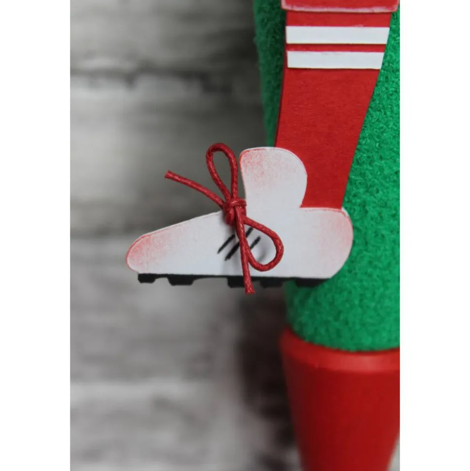 „Finns“ Trikot, Hose und Socken sind aus rotem Fotokarton, doppelt gearbeitet. Ein echter Hingucker sind „Finns“ Fußballschuhe!