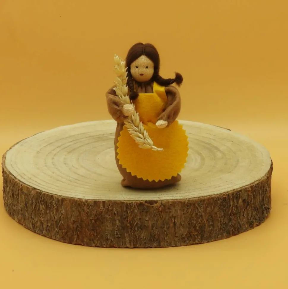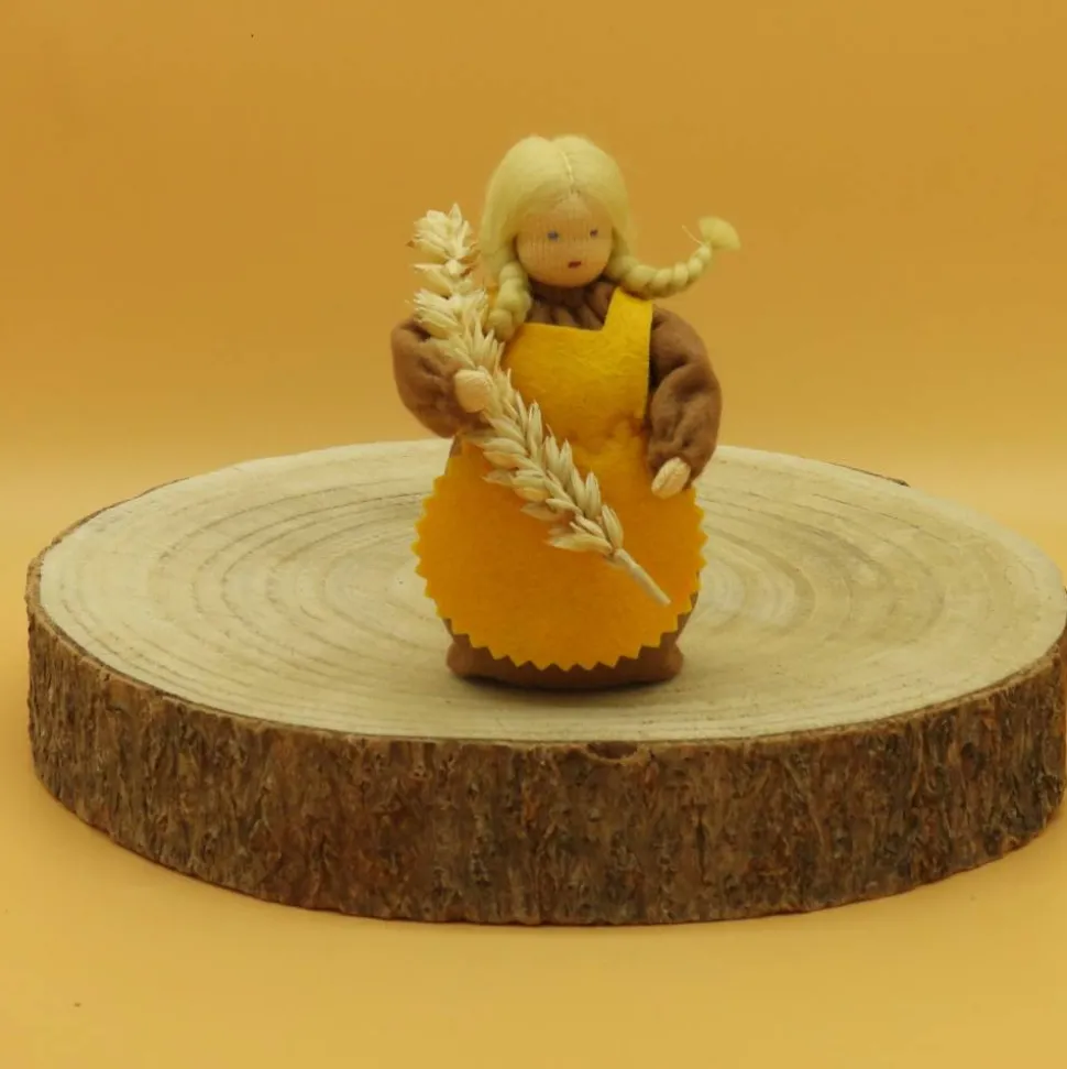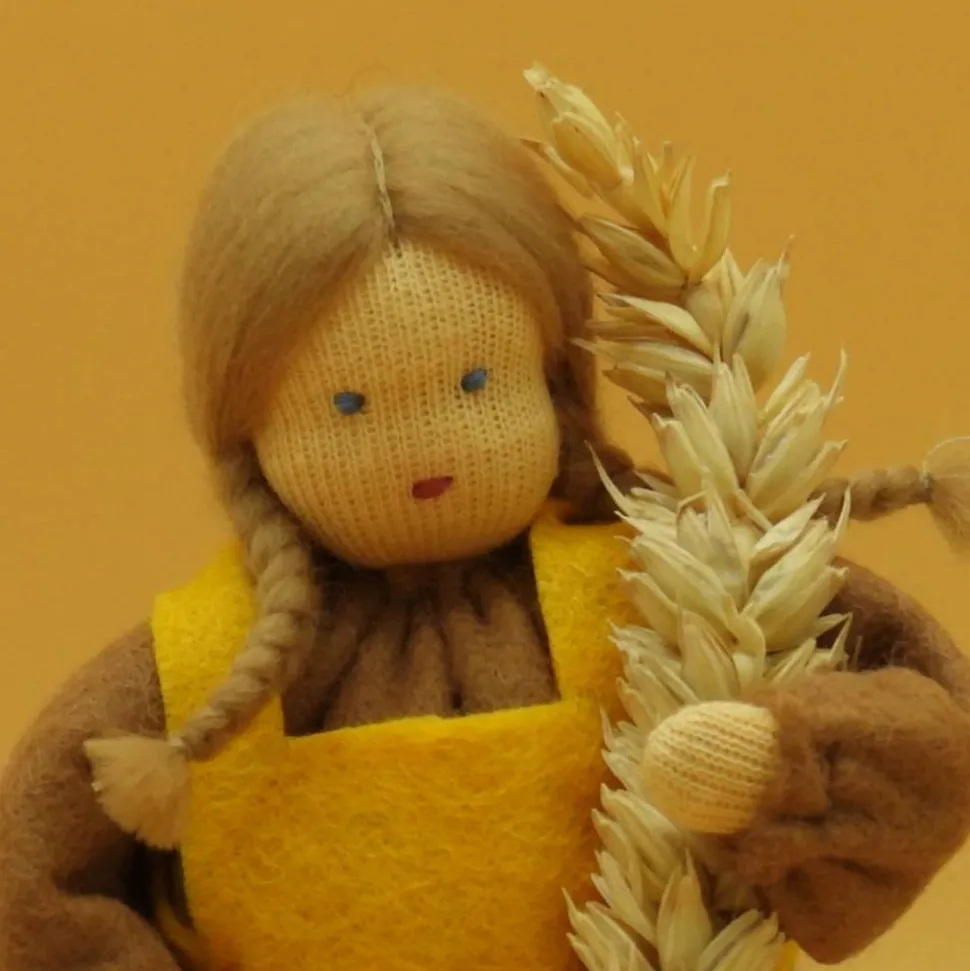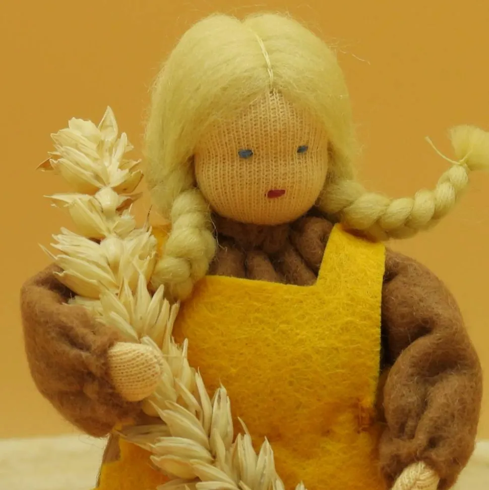 Das Püppchen ist unten geschlossen und für einen guten Stand unten mit feinem Dekokies und der Rest mit reiner Schurwolle gefüllt.
