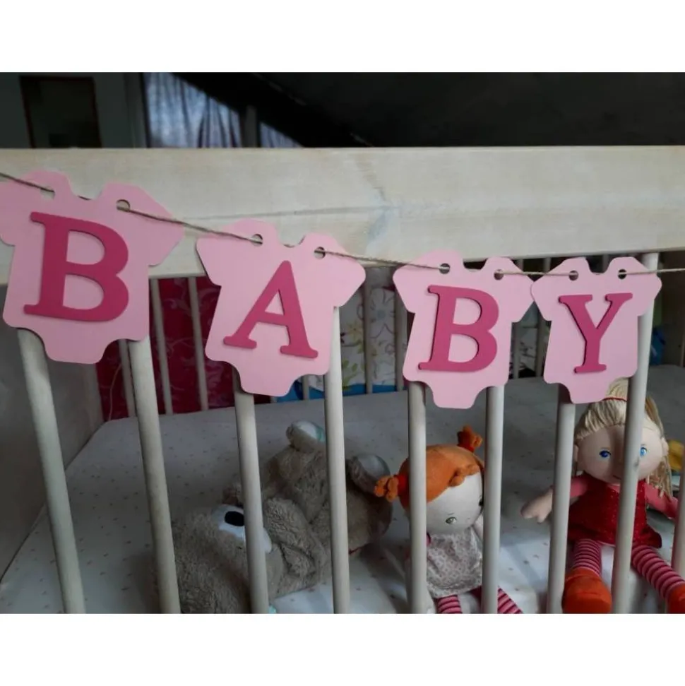 Die Buchstaben treten durch eine spezielle Klebetechnik plastisch hervor, hierdurch bekommt die Girlande eine besondere Wertigkeit.