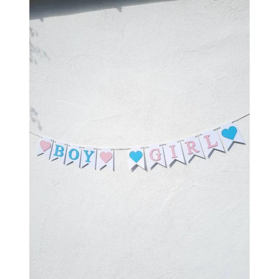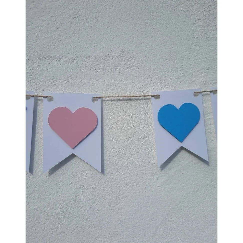 Die Girlande ist aufwendig von Hand gefertigt. Die einzelnen Wimpel sind 13cm hoch und etwa 9cm breit. Die Schrift ist aufgesetzt und hat einen plastischen 3D Effekt.