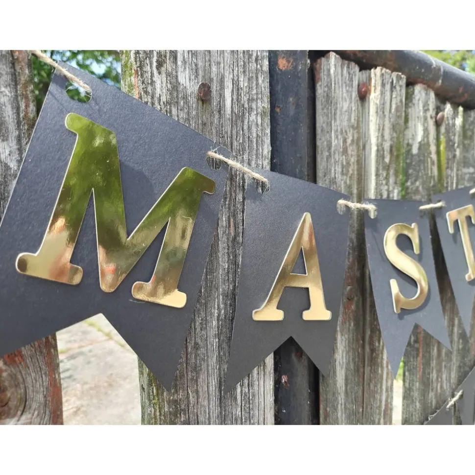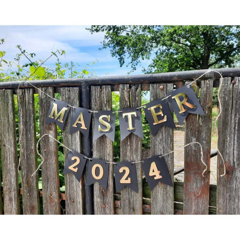 Unsere edle Girlande in Schwarz und Silber ist die passende Dekoration für die Meisterfeier.