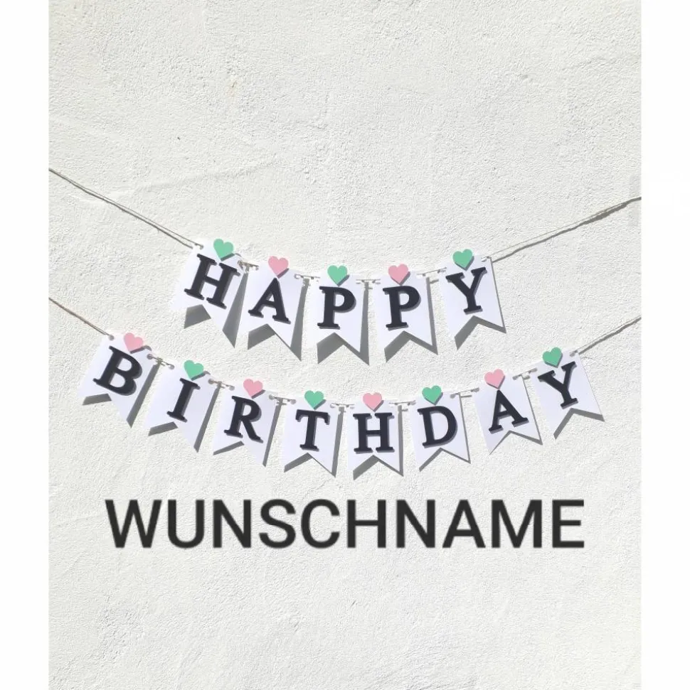 Auf Wunsch kann die Girlande mit dem Namen des Geburtstagskindes personalisiert werden.