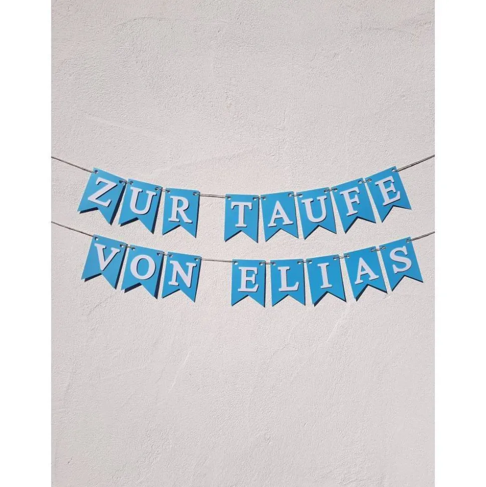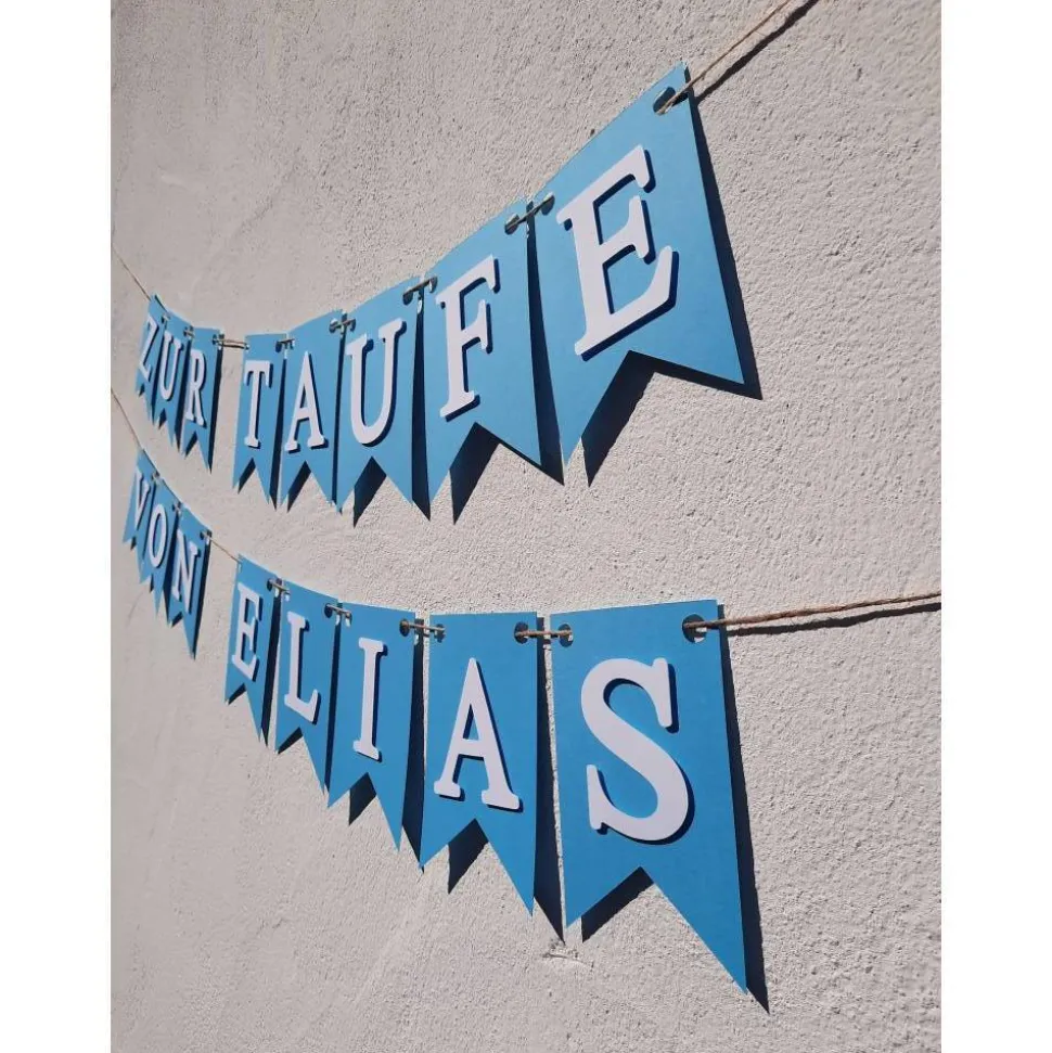 Girlande Wimpelkette zur Taufe auf Wunsch personalisiert mit Wunschnamen Pastell Blau Wimpel Dekoration Papier-Deko
