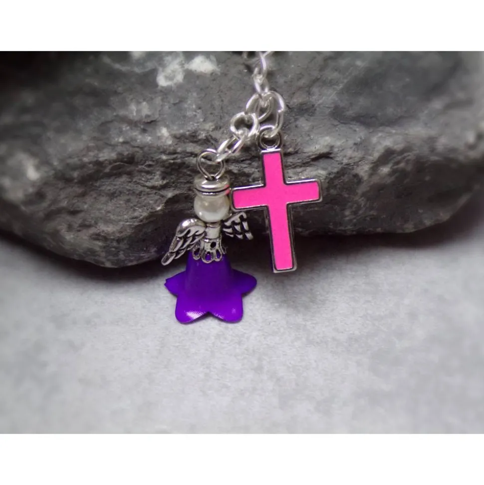 Glaube Firmung Kommunion Taufe Konfirmation Kreuz Engel Schlüsselanhänger lila