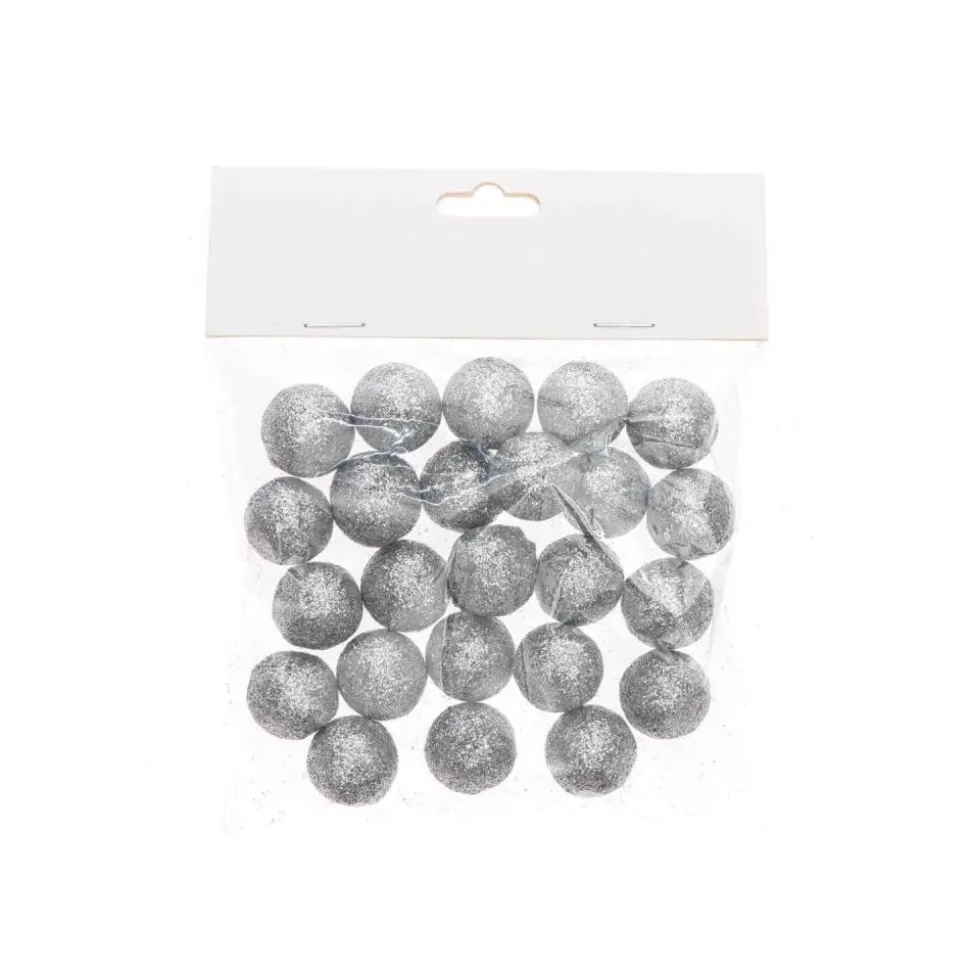Glitzerkugeln für die weihnachtliche Dekoration. Zum Basteln von Adventskränzen oder Weihnachtsgirlanden. Die aus Dekoschaum gefertigten Kugeln lassen sich mit Kleber befestigen oder an einem Faden aufreihen.