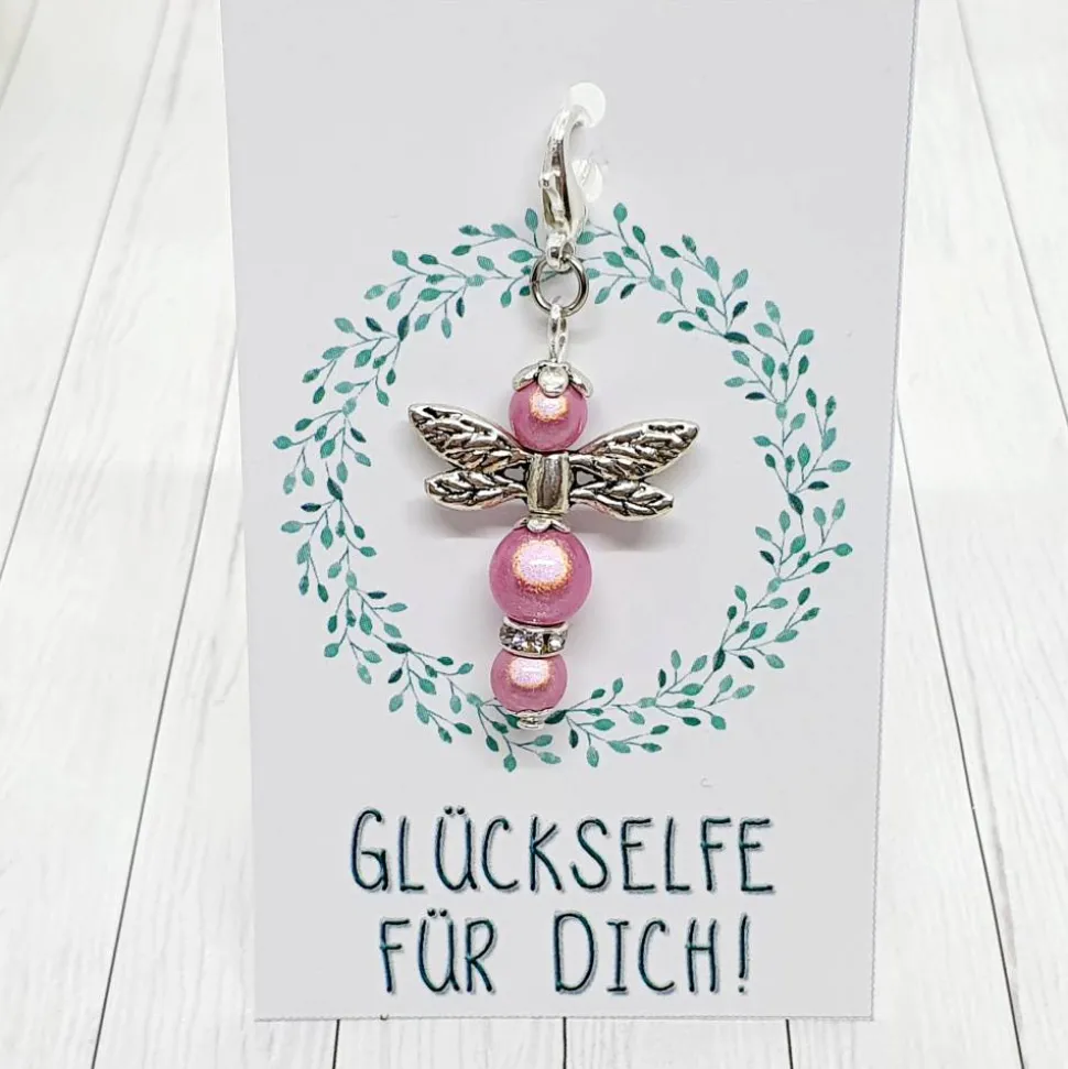 Jede Funkelelfe ist gute 3cm ohne Karabiner und fast 5cm inkl. Karabiner gemessen groß. Durch die genutzten 3D Perlen und das Strasselement entstehen je nach Lichteinfall wunderschöne Farbspiele und Glitzerfunken.