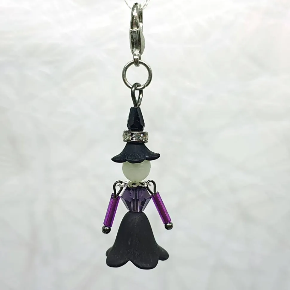 Glücksbringer kleine Hexe lila – Deine zauberhafte Begleiterin für den Alltag! Hexen sind nicht nur gruselig, sondern auch liebevoll, lustig und voller Magie. Diese kleine, völlig harmlose Hexe trägt einen stilvollen schwarzen Rock und eine lilafarbene Bluse, verziert mit funkelnden Glitzerelementen. Das Besondere: Ihr Köpfchen leuchtet im Dunkeln grün nach und sorgt so für einen echten Blickfang.