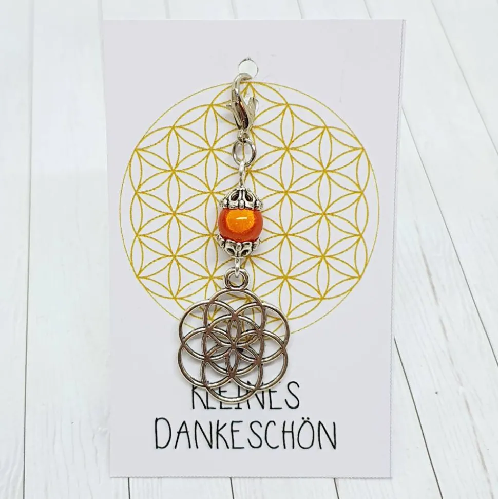 Entdecke den Glücksbringer Same des Lebens in silberfarben und orange – ein einzigartiger Anhänger, der Stil, Symbolkraft und Vielseitigkeit vereint. Der ca. 2cm breite Anhänger in Form des Samen des Lebens ist mit einer leuchtenden, orangefarbenen 3D-Acrylperle kombiniert. Dank des praktischen Karabiners kannst Du ihn flexibel an Ketten, Taschen oder Schlüsselanhängern befestigen.