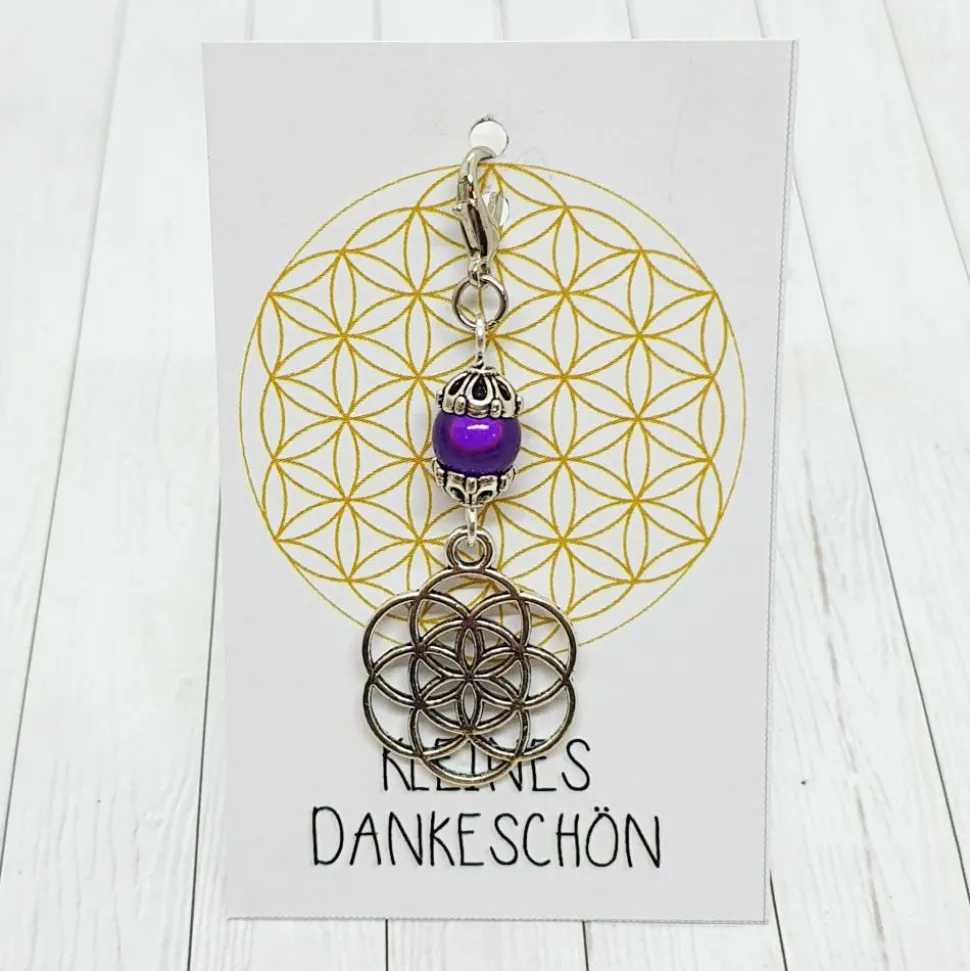 Entdecke den zauberhaften Glücksbringer „Same des Lebens“ in silberfarben und violett! Dieser elegante Anhänger ist 2cm breit und beeindruckt durch seine filigrane Form des Samen des Lebens, kombiniert mit einer violetten 3D-Acrylperle. Dank des praktischen Karabiners kannst du ihn vielseitig an Taschen, Ketten oder Schlüsselanhängern befestigen.