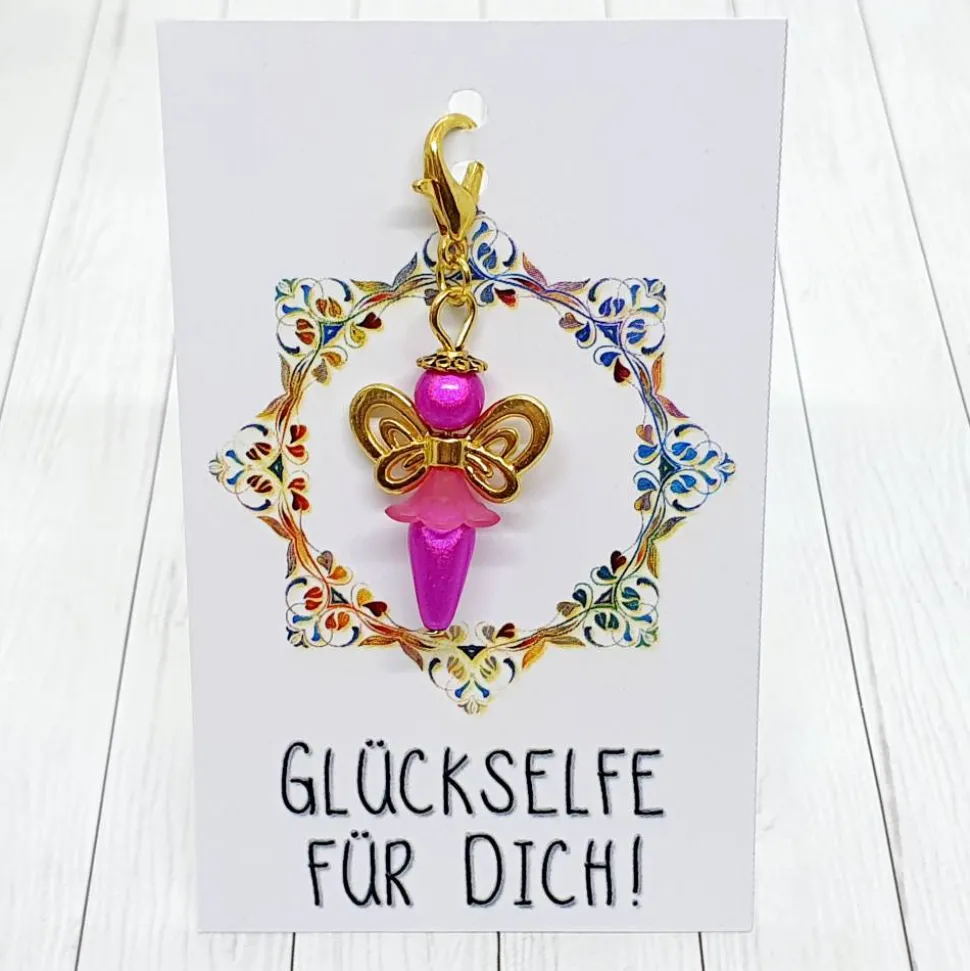 Glücksbringer Schmetterlingselfe goldfarben / pink – Entdecke diese zauberhafte Schmetterlingselfe, die in verwunschenen Wäldern zuhause ist. Nimmst du eine Schmetterlingselfe bei dir auf, bringt sie dir ganz viel Glück!