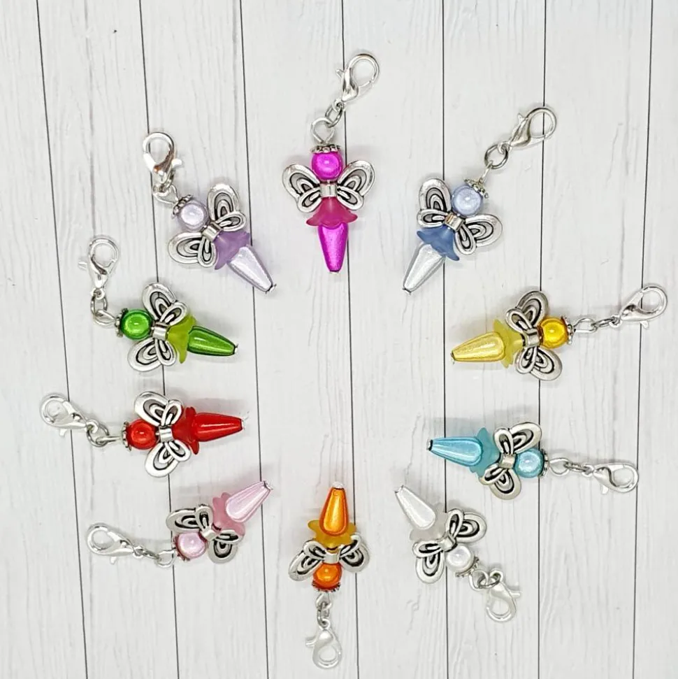 Jede Schmetterlingselfe ist ca. 3cm ohne Karabiner und 4,5cm inkl. Karabiner gemessen groß. Dank spezialbehandelter 3D-Perlen schimmern Köpfchen und Körper geheimnisvoll und machen jeden Anhänger zu einem echten Unikat.