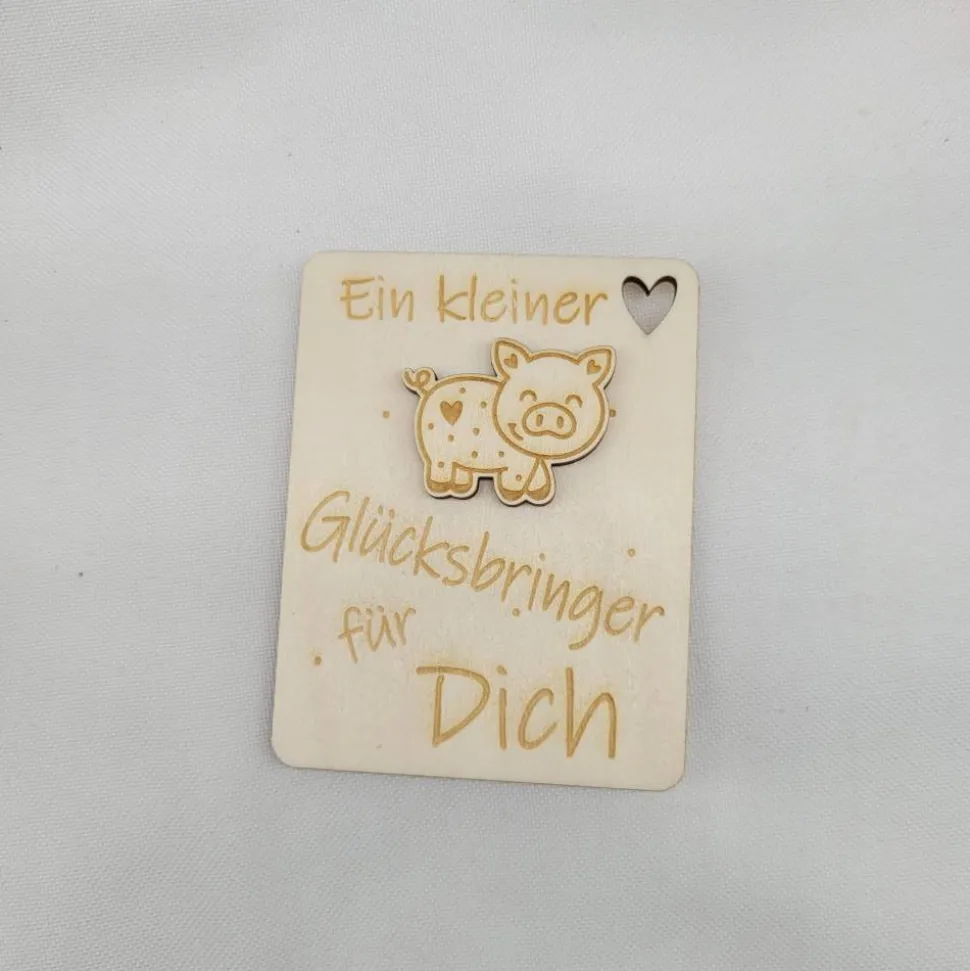 Verschenken sie Ihre Neujahrsgrüße und Glücksmomente mit der Süßen Holzkarte „Glücksbringer“.