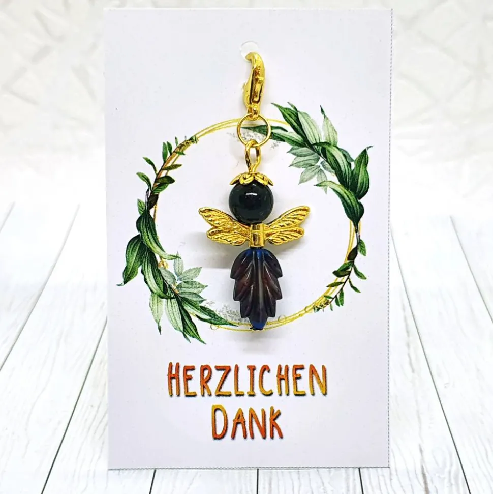 Entdecke die zauberhafte Glücksbringer Waldelfe goldfarben/dunkelblau – ein liebevoll gefertigter Anhänger, der Dir ganz viel Glück bringt! Diese zarten Waldelfen stammen aus verwunschenen Wäldern und verzaubern als handgemachte Unikate jedes Herz.