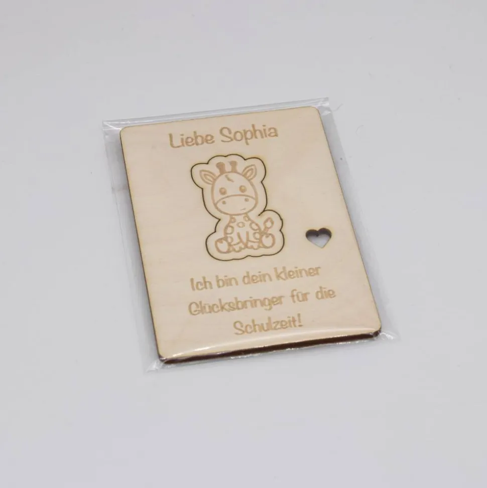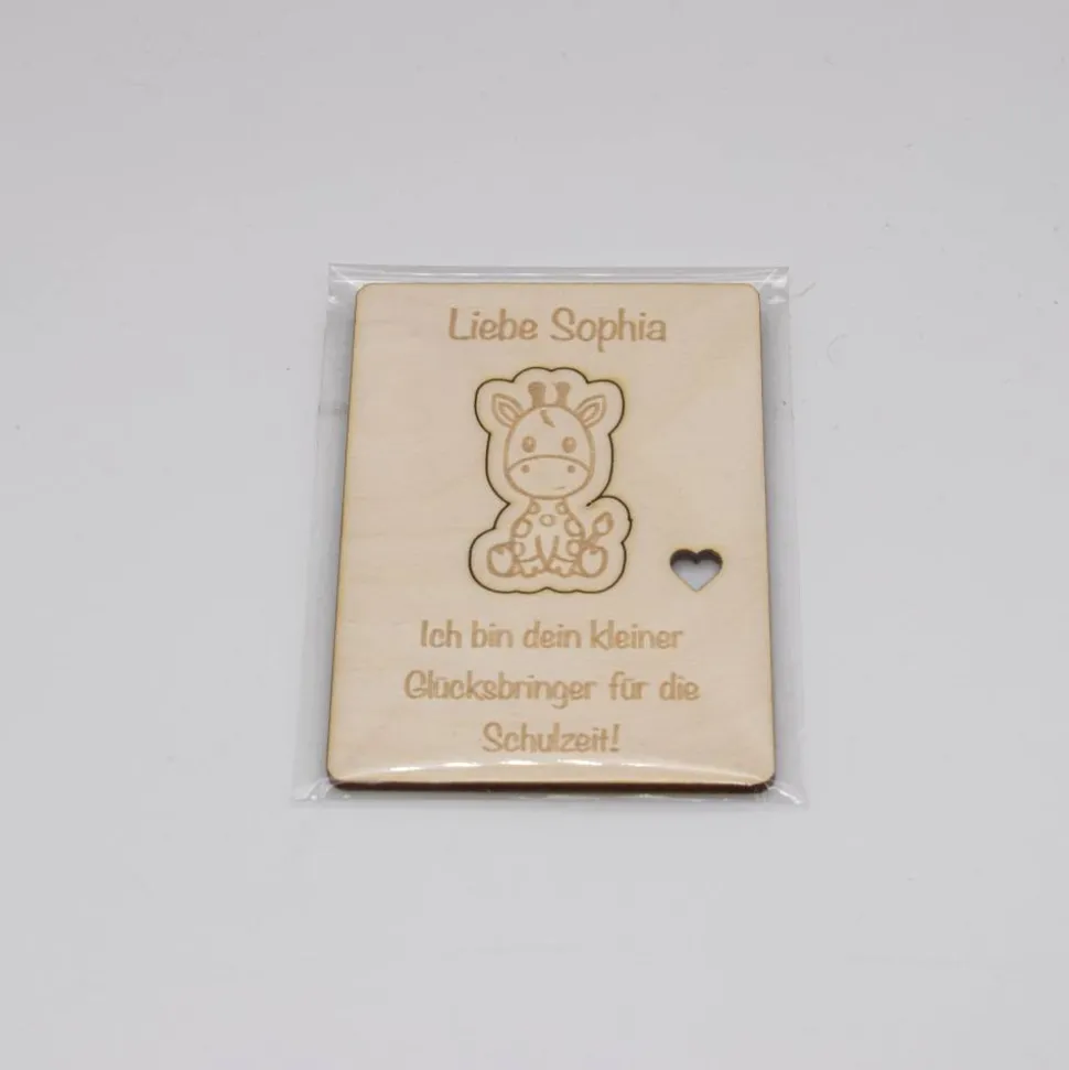 Dieser personalisierte Glücksbringer aus Holz ist ein liebevolles Geschenk zur Einschulung und ein täglicher Begleiter für den Schulanfang. Ideal für Schultüte, Federmappe oder Schulranzen – als Mutmacher für den ersten Schultag.