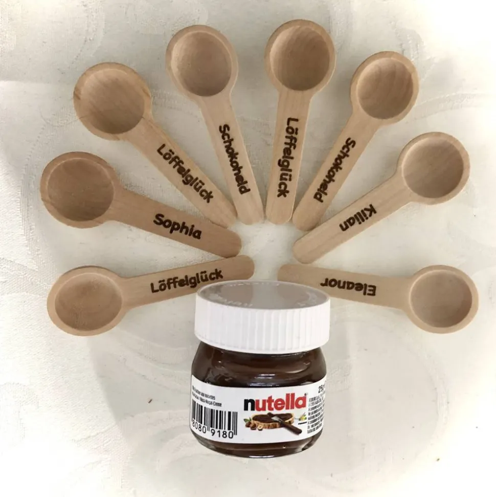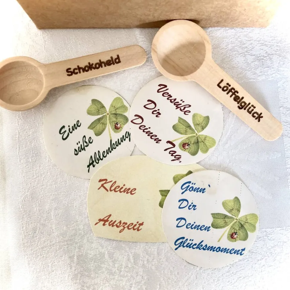 Glückspäckchen, Glücksbox, Freundschaftsgeschenk, Schokolade zum Löffeln, Holzlöffel mit Gravur,Mininutella mit Spruch
