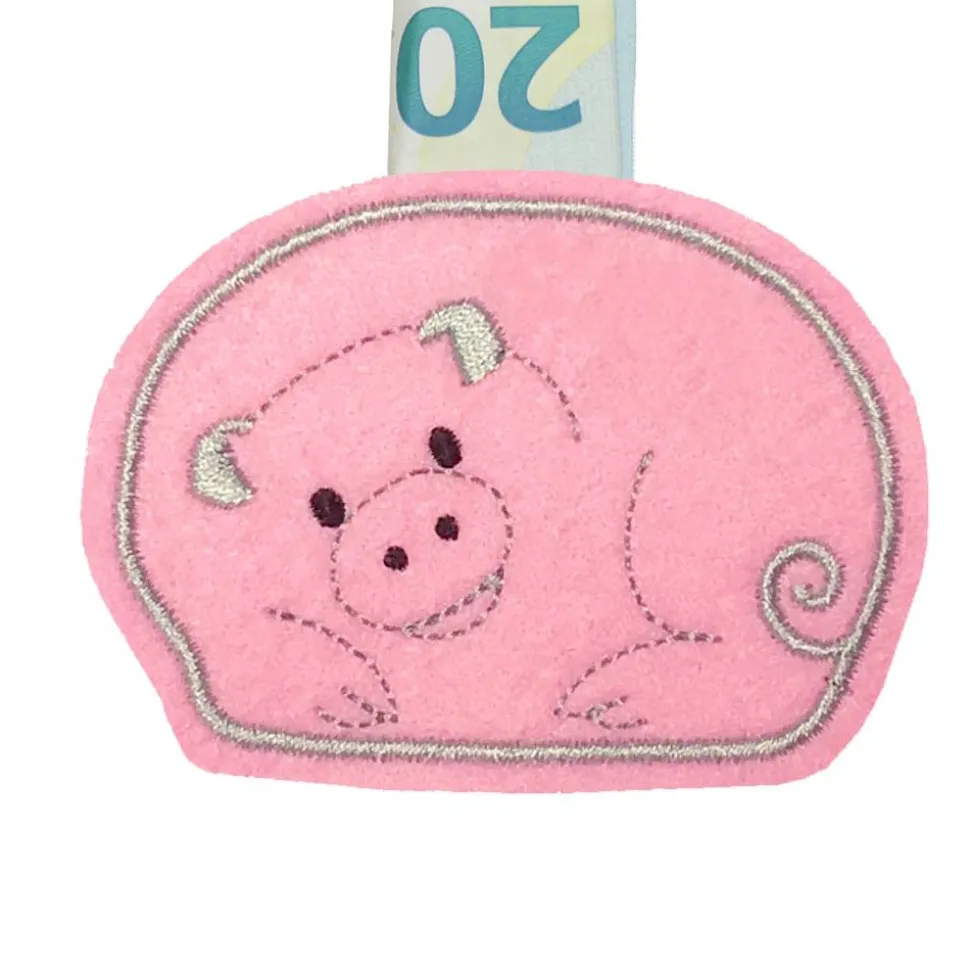 Hinweis: Der Geldschein ist nicht im Angebot enthalten – du kannst das Schweinchen nach Belieben selbst befüllen. Solltest du mehrere Schweinchen benötigen, sende einfach eine kurze Anfrage. Weitere bestickte Schweinchen findest du im Shop la miscela unter: